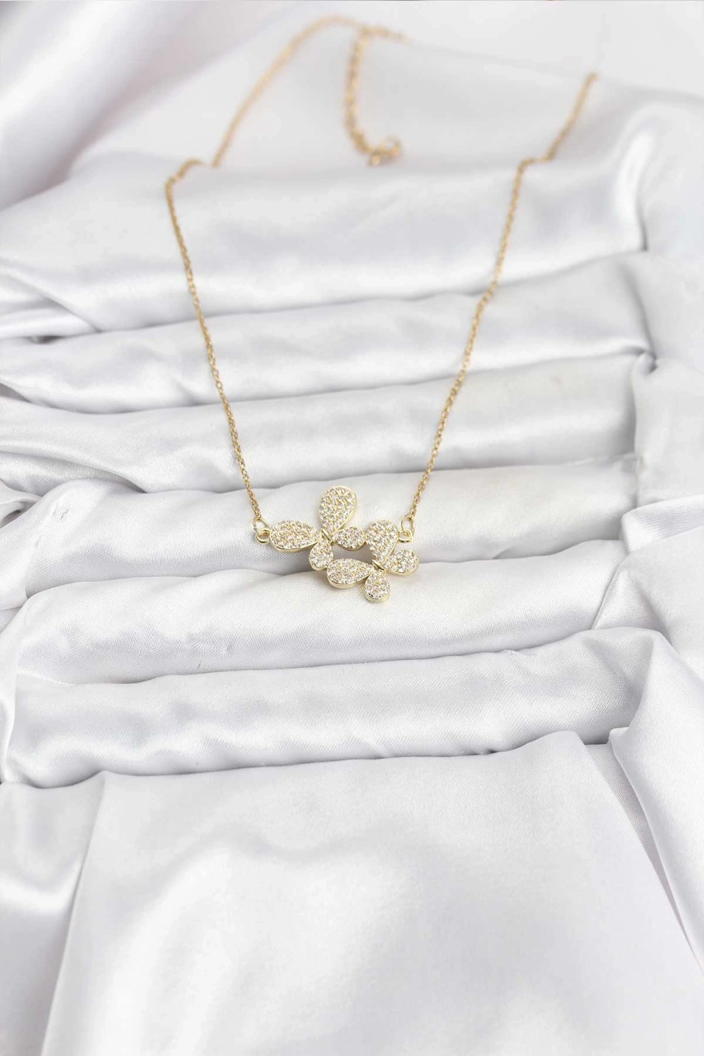 316L Çelik Zincir Gold Renk Zirkon Taşlı Kelebek Model Kadın Kolye