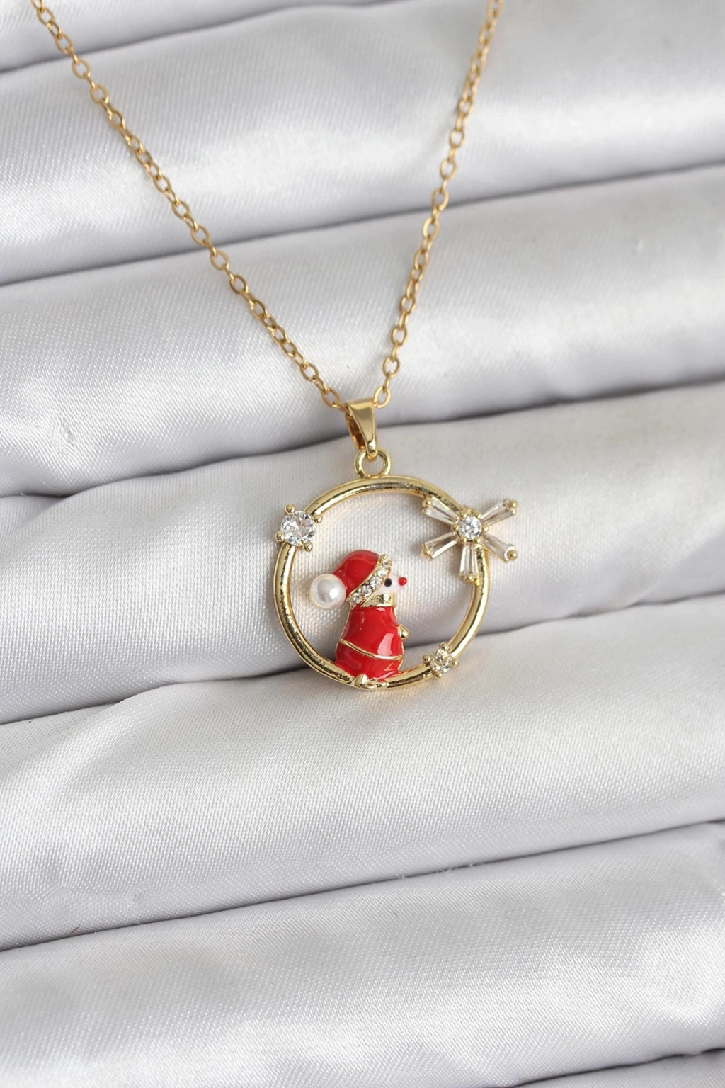 316L Çelik Zincir Gold Zirkon Taşlı Yılbaşı Tema Kadın Kolye
