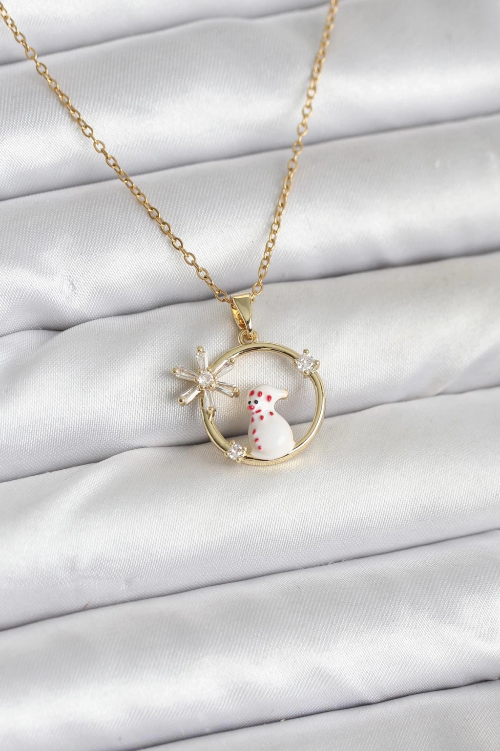 316L Çelik Zincir Gold Zirkon Taşlı Yılbaşı Temalı Kadın Kolye