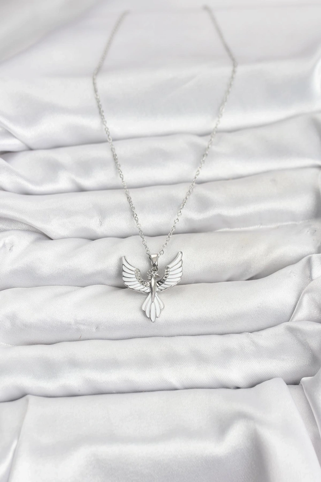 316L Çelik Zincir Gümüş Renk Anka Kuşu Model Kadın Kolye