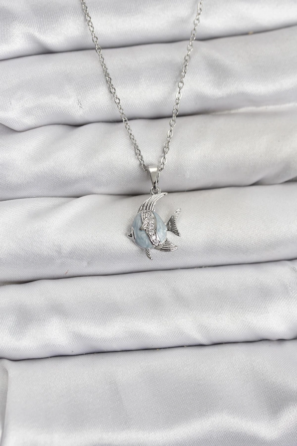 316L Çelik Zincir Gümüş Renk Balık Model Zirkon Taşlı Kadın Kolye