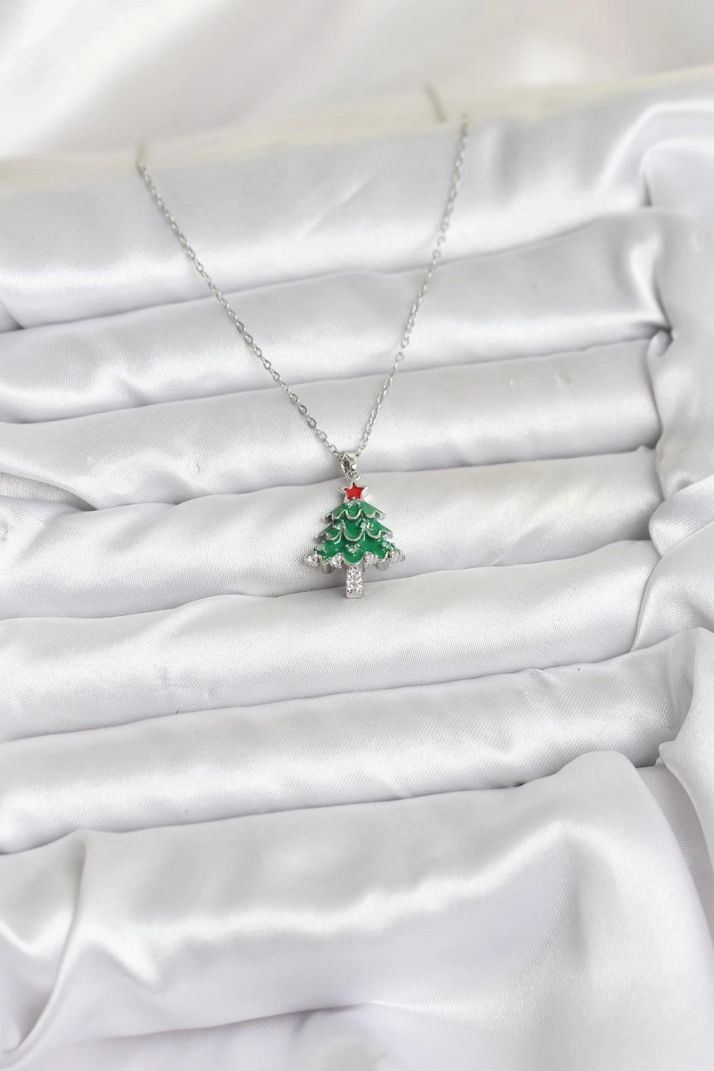 316L Çelik Zincir Gümüş Renk Çam Ağacı Model Yılbaşı Temalı Kadın Kolye