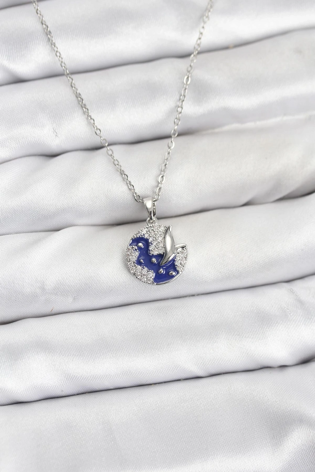 316L Çelik Zincir Gümüş Renk Gece Model Zirkon Taşlı Kadın Kolye