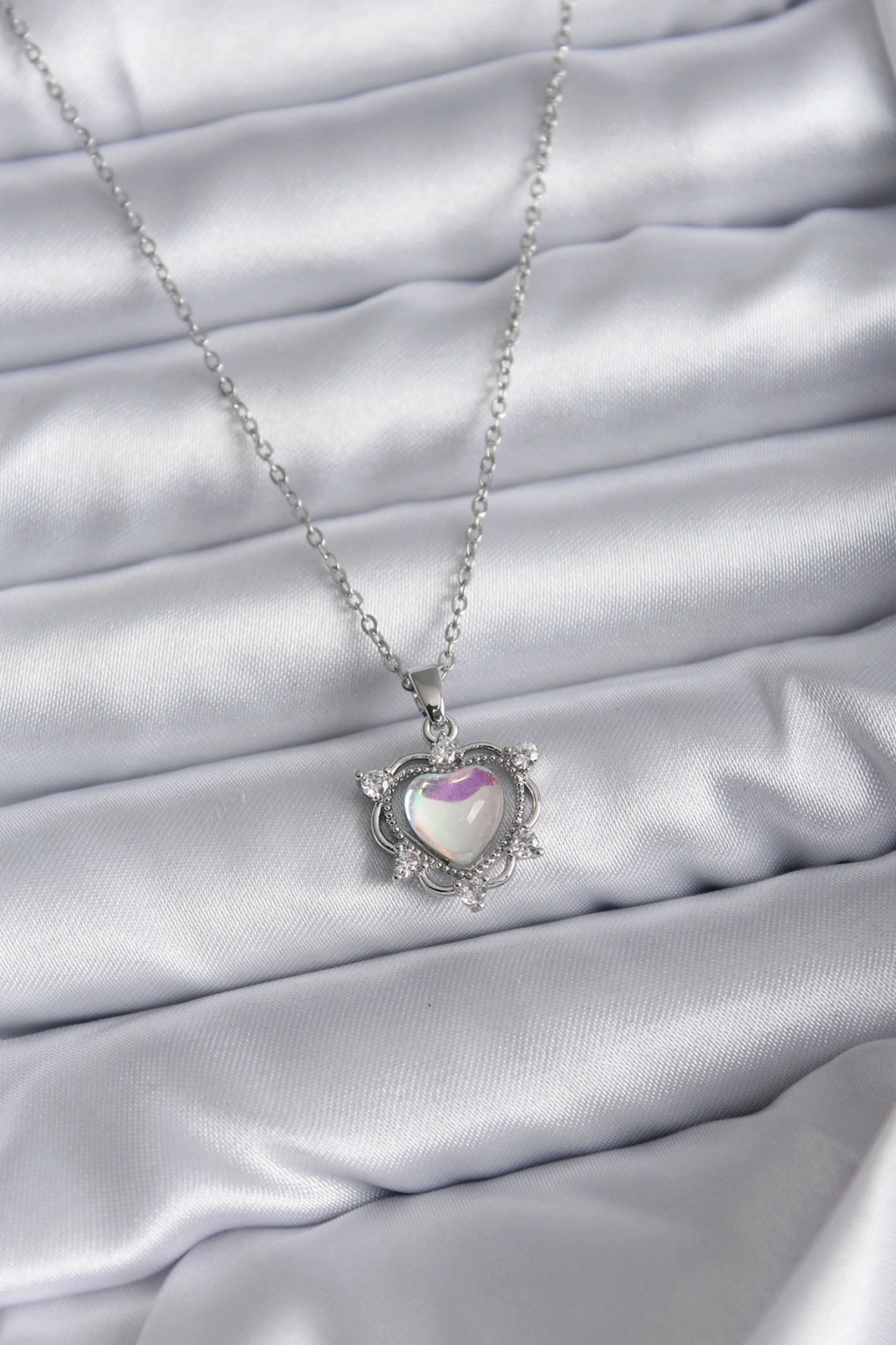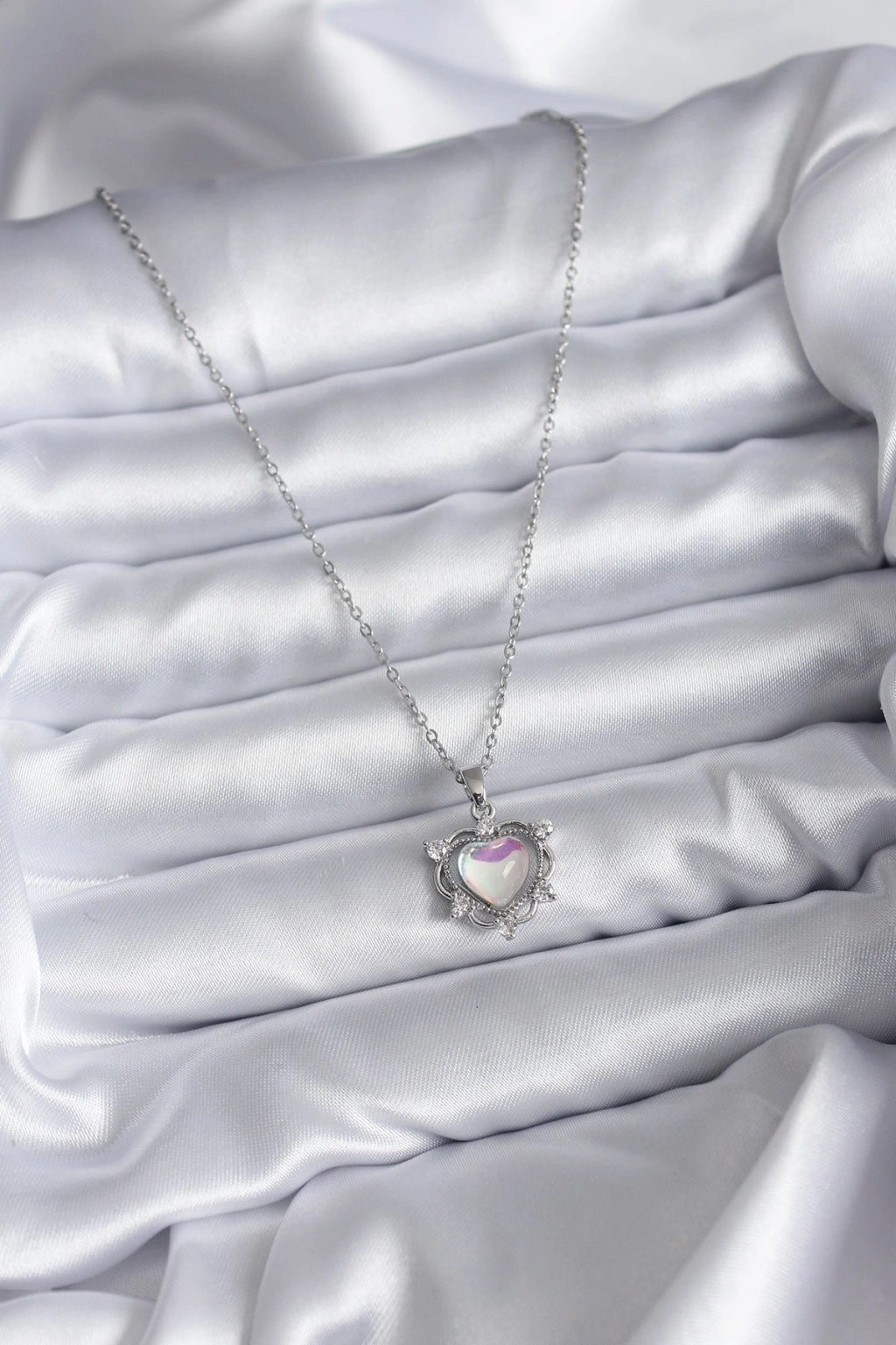 316L Çelik Zincir Gümüş Renk Kalp Model Kadın Kolye