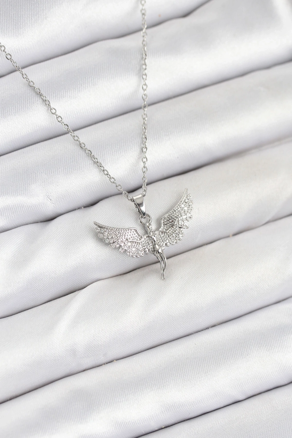 316L Çelik Zincir Gümüş Renk Melek Model Kadın Kolye