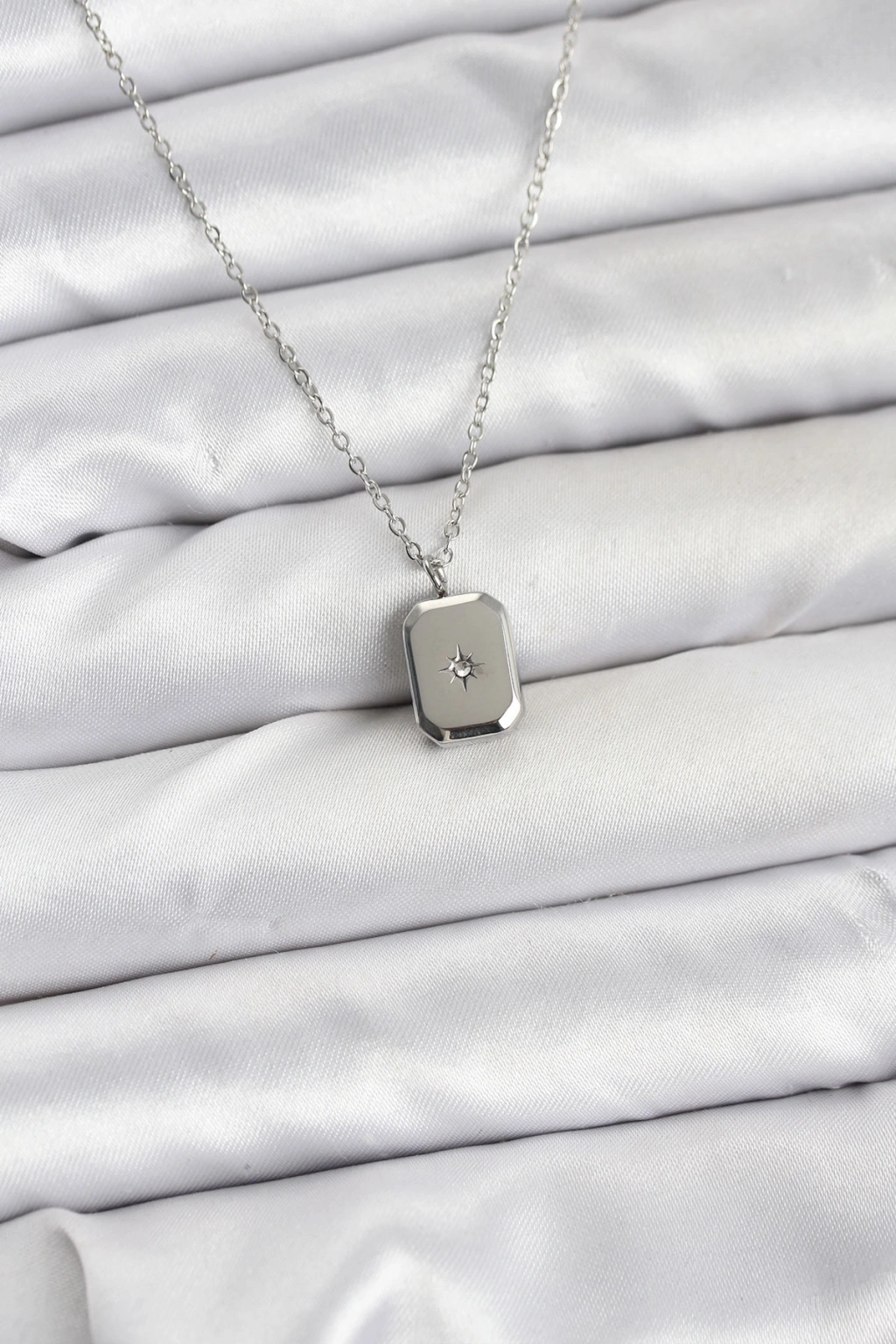 316L Çelik Zincir Gümüş Renk Minimal Kutup Yıldızı Model Kadın Kolye