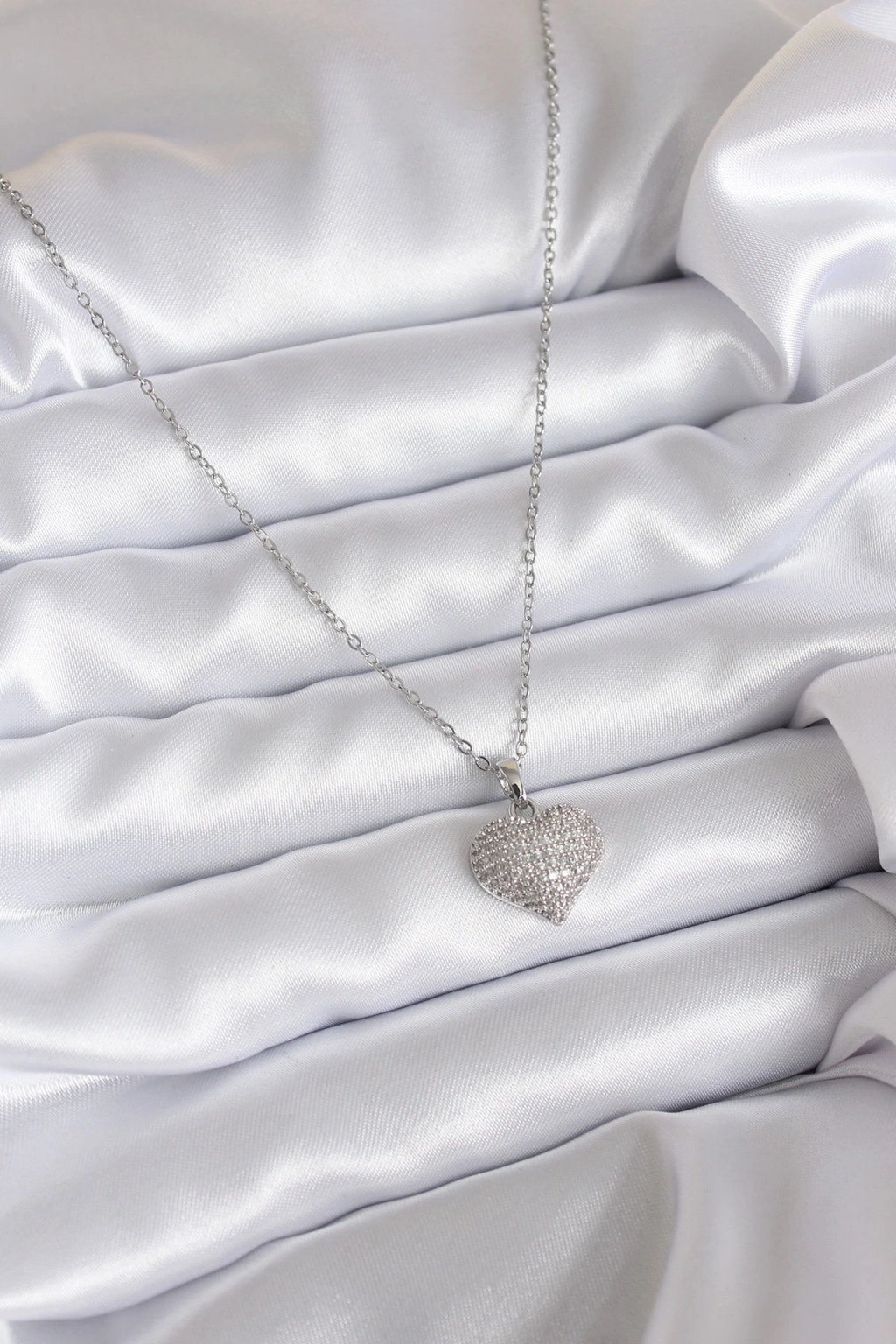 316L Çelik Zincir Gümüş Renk Zirkon Taş Detay Kalp Model Kadın Kolye