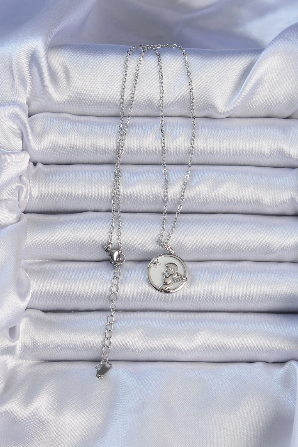 316L Çelik Zincir Gümüş Renk Zirkon Taşlı Mineli Melek Kolye