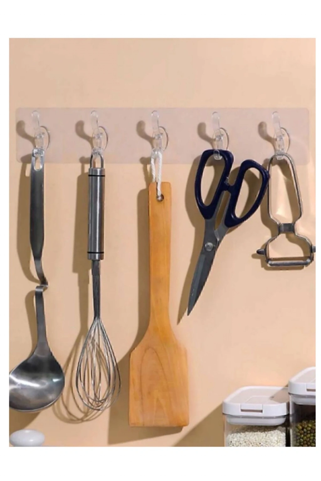 5'li kendinden yapışkanlı güçlü şeffaf askılık - Kapı arkası mutfak duvar banyo askı 5'li Güçlü Yapışkanlı Şeffaf Askılık Banyonuzda, mutfağınızda ve odanızda düzenleme sağlamanızı sağlayacak şık ve pratik bir ürün. Güçlü yapışkanlı askıya her türlü eşyanızı kolayca asabilirsiniz. Dalı plastik malzemesi ile uzun süre kullanıma uygundur. Kaliteli plastik malzemeden üretilmiştir. Arkasında bulunan yapışkanı ile kolayca yapıştırabilirsiniz. Ürün Boyutları: 3 cm x 29 cm x 6 cm.