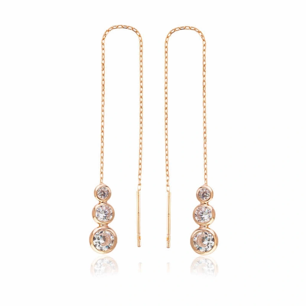 Gümüş Beyaz Taşlı Zincirli Küpe