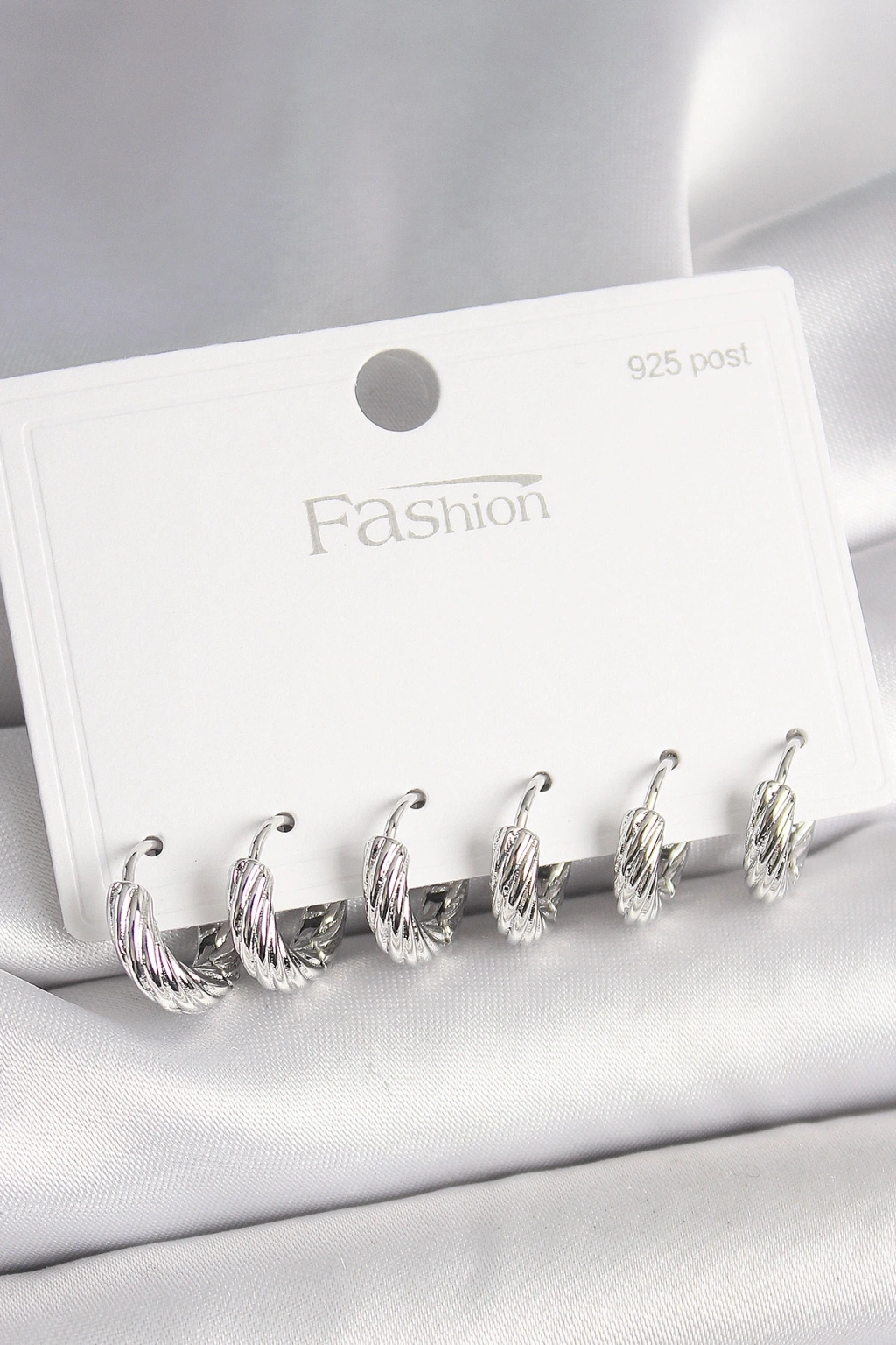 925 Ayar Gümüş Çivi Pirinç Gümüş Renk İşlemeli Halka Model Kadın Küpe Seti