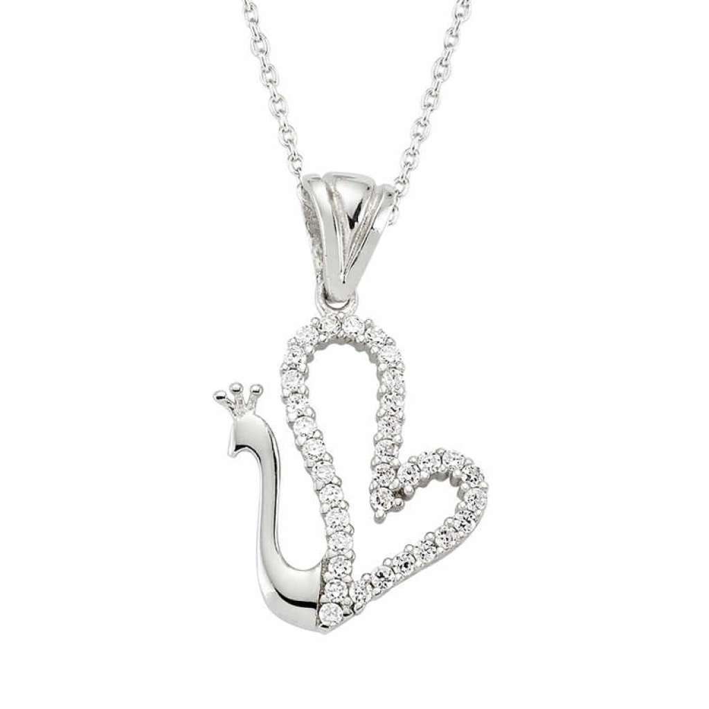 Gümüş Kalpli Kuğu Kolye