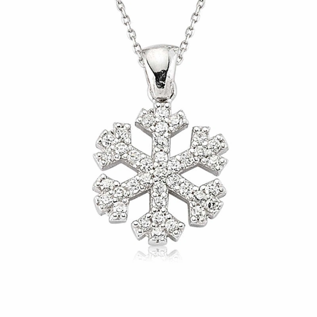 Bu harika tasarıma sahip kar tanesi kolye modeli 925 ayar gümüşten imal edilmiştir. Bir çok kar kristal çeşidi olmasına rağmen, kar tanelerinin kristal yapıları birbirinin tıpa tıp aynısı değildir, her bir kar tanesi eşsizdir ve bir benzeri yoktur. Sevdiklerine eşsiz bir hediye vermek isteyen kişiler için, zirkon taşlarla süslenmiş bu kar tanesi kolye mükemmel anlamlar yüklü kaçırılmayacak bir hediye fırsatıdır. Bu kar tanesi kolye modelinin üzerine rodyum kaplama yapılmıştır. Rodyum kaplama yapılan gümüş kolye modelleri parlaklığını uzun süre muhafaza eder ve oksitlenmesi gecikir. Gümüş kar tanesi kolyenin üzerinde bulunan beyaz taşlar zirkondur. Ortalaması 45 cm olan gümüş bir zincir ile birlikte gönderilir. Tüm gümüş kar tanesi kolye modellerimiz emeği ile üretilmiştir. Gümüş ve değerli taşlar nedeniyle belirtilen ortalama ürün ağırlığında ± %10 sapma olabilmektedir.