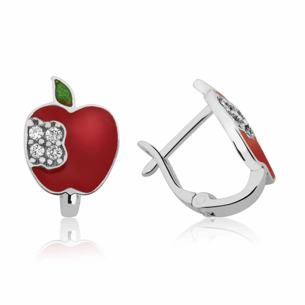 Gümüş Kırmızı Elma Çoçuk Küpesi