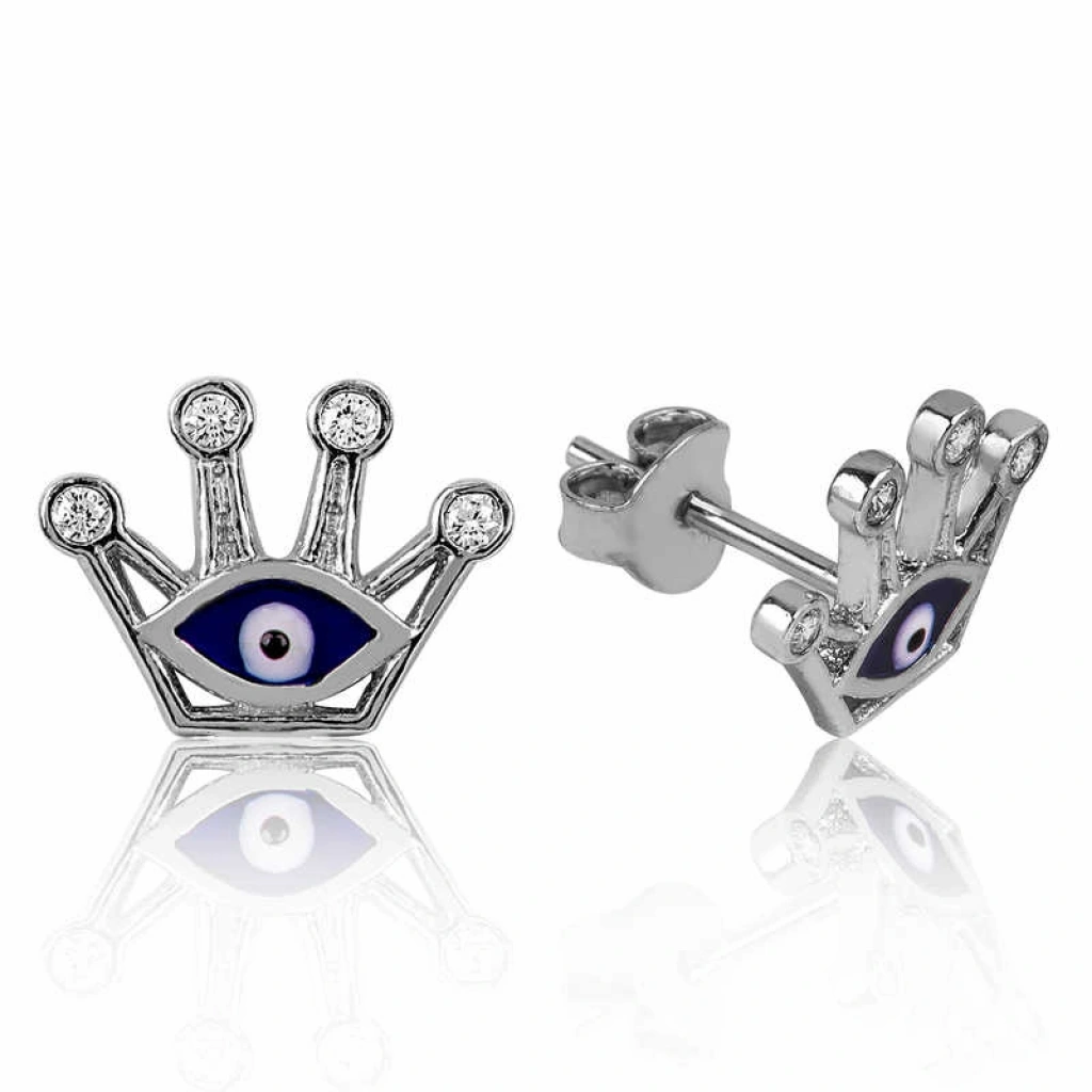 Gümüş Nazarlı Kraliçe Tacı Çivili Küpe