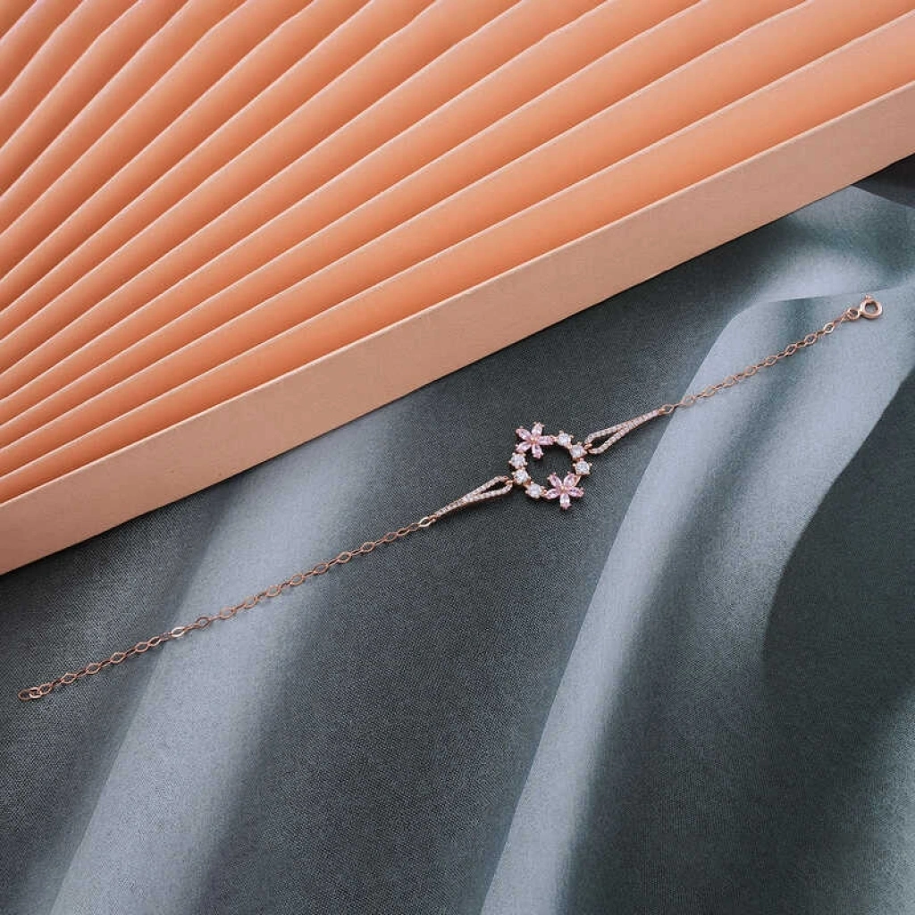 Gümüş Rose Pembe Çiçek Kadın Bileklik