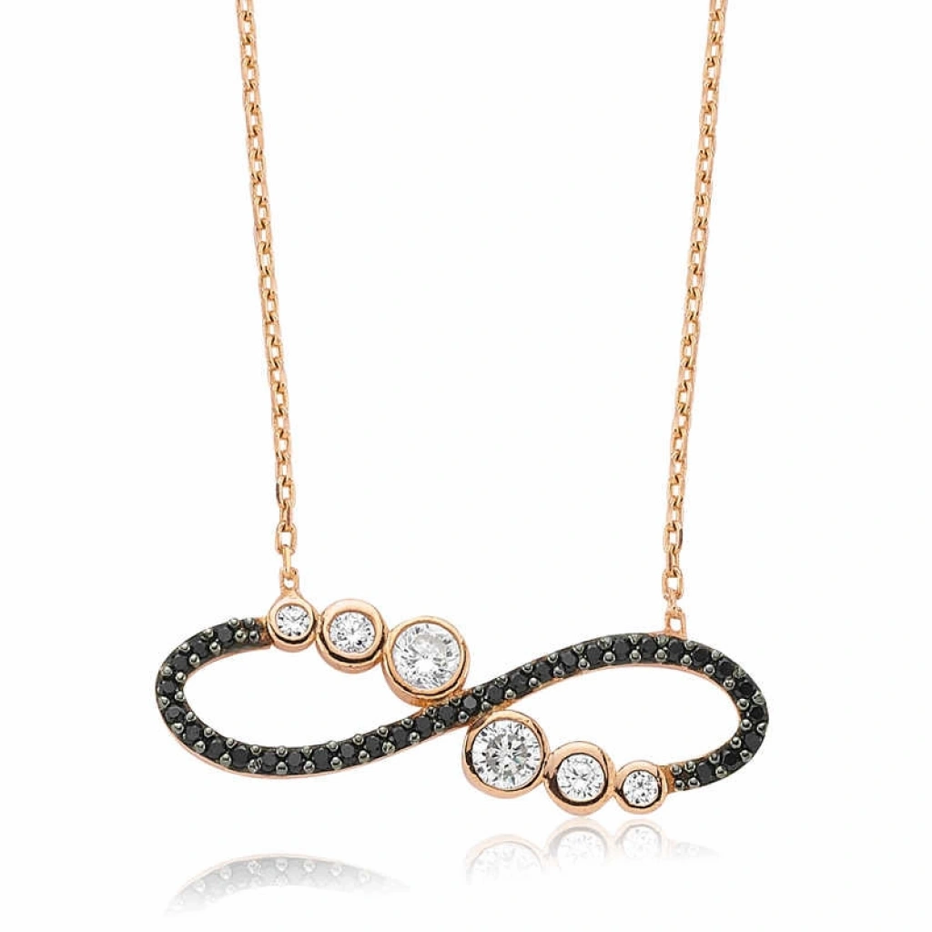 Sevgilinize sonsuz aşkı ifade etmenin en güzel en anlamlı yollarından biri de ona sonsuzluk temalı gümüş kolye hediye etmektir. Sevgilinize hediye edeceğiniz bu özel kolye ile ona olan sonsuz aşkınızı sevginizi ifade edebilir sonsuza kadar birlikte olacağınız mesajı verebilirsiniz. Gümüş süzme suyolu sonsuzluk kolye 925 ayar gümüşten imal edilmiştir. Gümüş üzerine rose altın kaplama yapılmıştır. Rose altın kaplama yapılan gümüş sonsuzluk kolye modelleri parlaklığını uzun süre muhafaza eder ve oksitlenmesi gecikir. Kolye üzerinde bulunan taşlar zirkondur. Gümüş olan zincir boyu ortalama 45 cm'dir. Tüm kolye modellerinde olduğu gibi gümüş süzme suyolu sonsuzluk kolye de el emeği ile üretilmiştir. Gümüş ve değerli taşlar nedeniyle belirtilen ürün ağırlığında ± %10 sapma olabilmektedir.