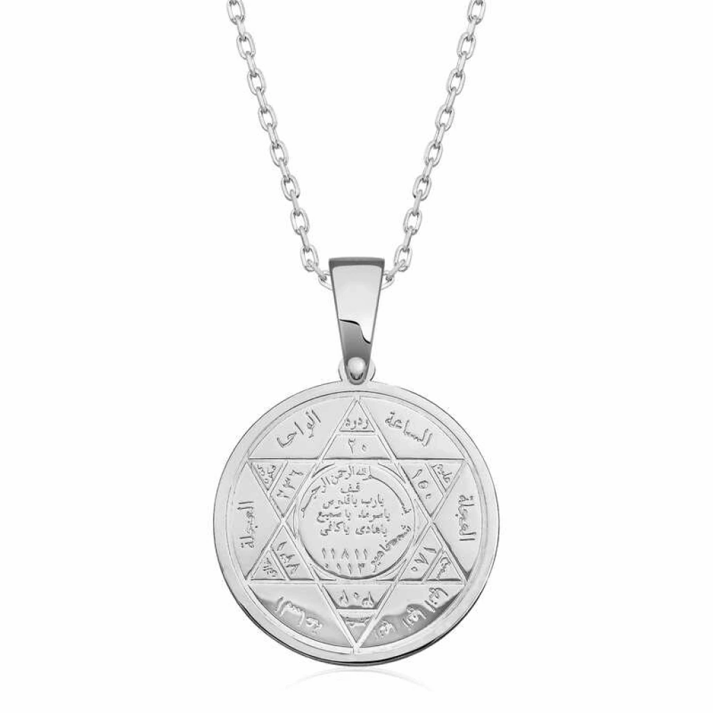 Kolye 925 ayar gümüşten imal edilmiştir. Gümüş üzerine rodyum kaplama yapılmıştır. Rodyum kaplama yapılan gümüş kolyeler parlaklığını uzun süre muhafaza eder. Tüm gümüş bayan kolyelerde olduğu gibi gümüş Süleyman mührü kolye de el emeği ile üretilmiştir. Gümüş ve değerli taşlar nedeniyle belirtilen ortalama ürün ağırlığında ± %10 sapma olabilmektedir.