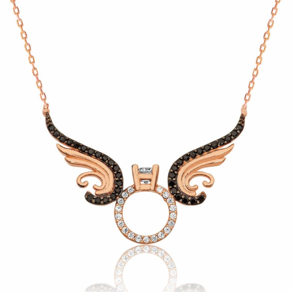 Sevgilinize duyduğunuz aşkınızı ve ilk anki mutluluğunuzu her an hatırlayabileceğiniz, en romantik anlarınıza eşlik edecek kalpte birleşen tektaş kolye uzun bir birliktelik beklediğiniz sevdiğinize verebileceğiniz en anlamlı hediyelerden biri olacaktır. Romantik aşkınızı anlatmak için oluşturulan bu özel tasarım ile sevgilinize doğum günü , sevgililer günü yada özel günlerde hediye ederek onları mutlu edebilirsiniz... Bu aşk dolu kolye 925 ayar gümüşten üretilmiştir. Gümüş kanatlı tek taş kolye üzerinde bulunan taşlar zirkondur. Bu gümüş kolye üzerine rose altın kaplama yapılmıştır. Rose altın kaplama yapılan kolyeler parlaklığını uzun süre muhafaza eder, gümüş rengini pembe renge dönüştürür ve oksitlenmeyi geciktirir. Tüm gümüş kolyelerde olduğu gibi bu gümüş kanatlı tek taş kolye de el emeği ile üretilmiştir. Gümüş ve değerli taşlar nedeniyle belirtilen ortalama ürün ağırlığında ± %10 sapma olabilmektedir.