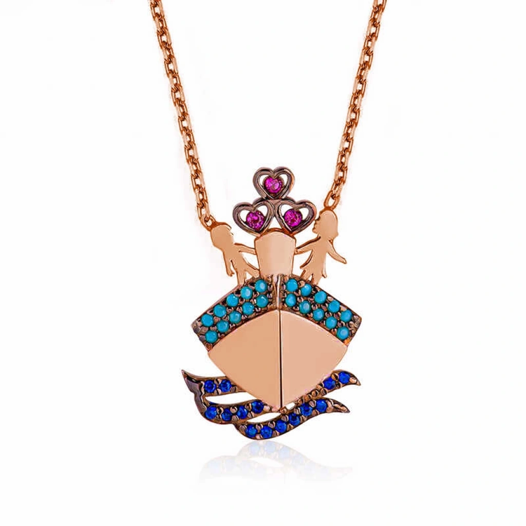 Titanik gemisinde yaşanan o müthüş aşkı sizler için tasarladık... Bu şık ve anlamlı kolyeyi doğum günü hediyesi, sevgililer günü hediyesi veya annelere hediye olarak özel günlerde tercih edilebilecek mükemmel bir seçenektir. Titanik kadın kolye 925 ayar gümüşten imal edilmiştir. Gümüş üzerine rose kaplama yapılmıştır. Rose kaplama yapılan kadın kolyeler parlaklığını uzun süre muhafaza eder ve oksitlenmeyi geciktirir. Zincir boyu ortalama 45 cm'dir. Üzerinde bulunan taşlar firuze ve zirkondur. Tüm kadın kolyelerimizde olduğu gibi gümüş titanik kadın kolye de tamamı el emeği ile üretilmiştir. Gümüş ve değerli taşlar nedeniyle ürün ağırlığında ± %10 sapma olabilmektedir.