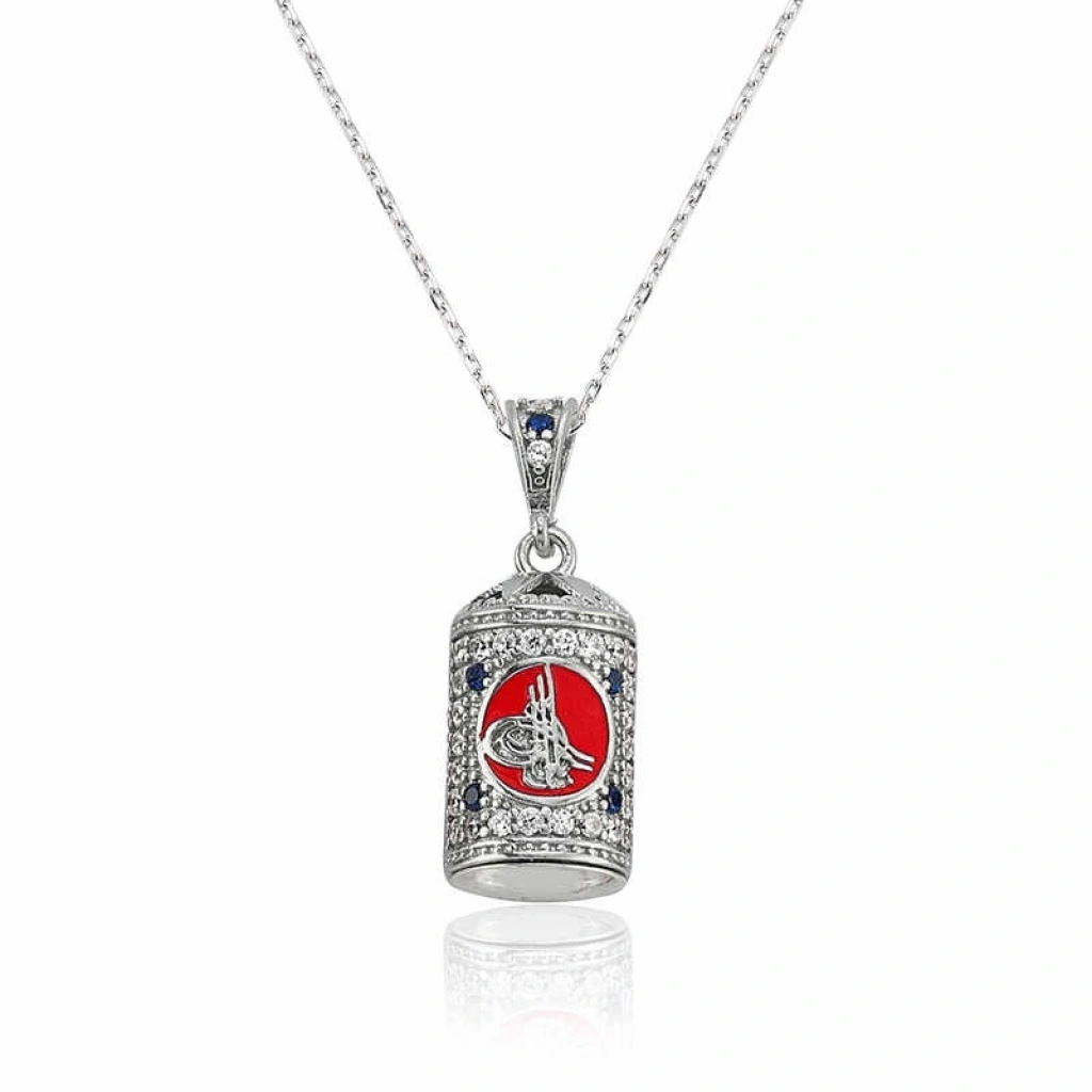 Osmanlı Devleti ve İmparatorluğu'ndaki padişahların imza olarak da kullandığı tuğra sembolü cevşen kolye ile birleşerek hem anlamı hem de dini boyutu ile güzel bir kolye haline gelmiştir. Böylelikle sevdiklerinizi veya kendinizi dini ve derin bir anlama sahip olan bu kolye ile sevindirebilirsiniz. Bu şık kolye modeli 925 ayar gümüşten imal edilmiştir. Gümüş üzerine rodyum kaplama yapılmıştır. Rodyum kaplama yapılan gümüş cevşenler parlaklığını uzun süre muhafaza eder, oksitlenmesi gecikir. Üzerinde bulunan taşlar zirkondur. Zincir boyu ortalama 45 cm'dir. Ürünlerimizin tamamı el emeği ile üretilmiştir. Gümüş ve değerli taşlar nedeniyle belirtilen ortalama ürün ağırlığında ± %10 sapma olabilmektedir.