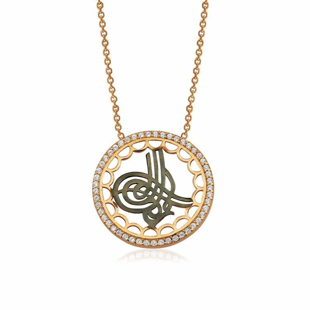 Osmanlı imparatorluğundaki padişahların imzası olarak da kullandığı tuğra sembolü kolye ile birleşerek anlamlı bir gümüş takı haline gelmiştir. Böylelikle sevdiklerinizi veya kendinizi derin bir anlama sahip olan bu kolye ile sevindirebilirsiniz. Tuğra kolye modeli 925 ayar gümüşten imal edilmiştir. Gümüş üzerine rose altın kaplama yapılmıştır. Rose altın kaplama yapılan gümüş kolye modelleri parlaklığını uzun süre muhafaza eder. Kolye üzerinde bulunan beyaz taşlar zirkondur. Gümüş olan zincir boyu ortalama 45 cm'dir. Gümüş tuğralı kolye modeli diğer tüm gümüş kolye modellerinde olduğu gibi el emeği ile üretilmiştir. Gümüş ve değerli taşlar nedeniyle belirtilen ürün ağırlığında ± %10 sapma olabilmektedir.