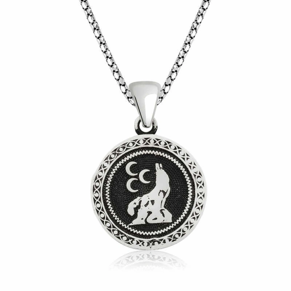 Bozkurt, Türklerin ulusal sembolüdür. Tarih öncesi dönemlerden beri Türklerce kutsal sayılmıştır. Bozkurt'un kutsal sayılmasının ve Türklerin ulusal sembolü olmasının en önemli nedeni, Türklerin bir bozkurtun soyundan geldiklerine inanmalarıdır. Bozkurt, bugün Türk milliyetçiliğinin sembolüdür. Atatürk tarafından da ulusal sembol ilan edilmiş ve birçok yerde kullanılmıştır. Cumhuriyet’in ilk yıllarında Türk Parası üzerine Bozkurt resimleri basılmıştır. Hilal taktiği (veya Turan/Türk taktiği) adı verilen yarım çember ile düşmanı ortaya alıp çemberi kapatma stratejisinin kurtlardan görülerek ilk defa Türkler tarafından uygulanmıştır. Üç hilal bozkurt kolye 925 ayar gümüşten imal edilmiştir. Gümüş üzerine oksit kaplama yapılmıştır. Oksit kaplama yapılan gümüş kolye modelleri parlaklığını uzun süre muhafaza eder ve oksitlenmesi gecikir. Gümüş olan zincir boyu ortalama 55 cm'dir. Bu üç hilal bozkurt kolye de diğer gümüş kolye modellerinde olduğu gibi el emeği ile üretilmiştir. Gümüş ve değerli taşlar nedeniyle belirtilen ürün ağırlığında ± %10 sapma olabilmektedir.