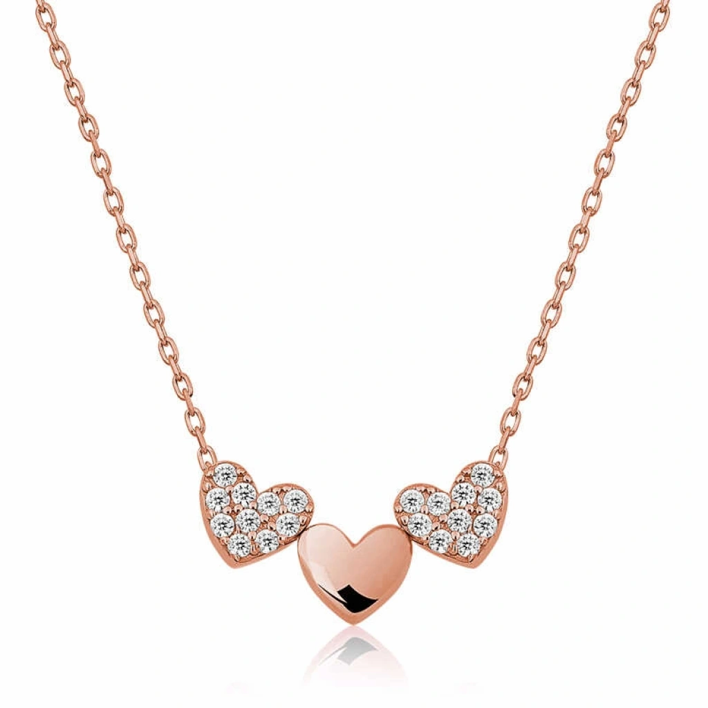 Kalp simgesi daima koşulsuz sevginin ve aşkın sembolü olmuştur. Dini öğretilerde ise kalbin gücü sınırsızdır. Çünkü kalp Yaradanın evi, bizim ise evrene açılan gerçeklik kapımızdır. Üç kalp kolye sevginizi temsil edecek en şık ve anlamlı kolyelerden biridir. Bu şık üç kalpli kolye; doğum günü hediyesi, sevgililer günü hediyesi veya annelere hediye olarak özel günlerde tercih edilebilecek mükemmel bir seçenektir. Gümüş zirkon taşlı üç kalp kolye 925 ayar gümüşten imal edilmiştir. Bu kolye üzerinde rose kaplama yapılmıştır. Rose kaplama yapılan gümüş kolye modelleri parlaklığını uzun süre muhafaza eder. Üzerinde bulunan ışıl ışıl taşlar zirkondur. Tüm gümüş kolye modellerinde olduğu gibi gümüş üç kalp kolye modeli de el emeği ile üretilmiştir. Gümüş ve değerli taşlar nedeniyle belirtilen ortalama ürün ağırlığında ± %10 sapma olabilmektedir.