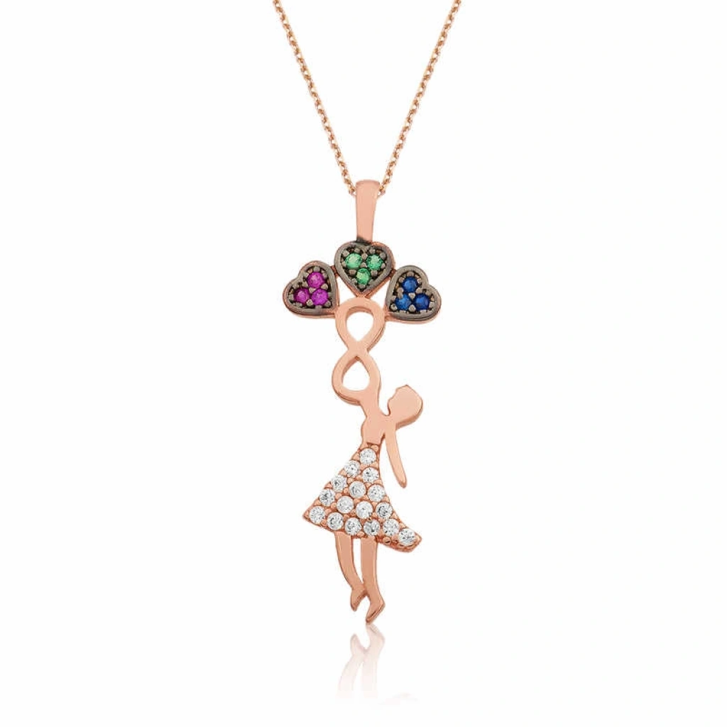 Aşkınızı bütün saflığı,tamizliği ve sonsuzluğuyla anlatmanız için tasarladığımız bu rengarenk kolye ile hayata ışıl ışıl sevgi penceresinden bakmaya ne dersiniz? Bu şıklığı; doğum günü hediyesi, sevgililer günü hediyesi veya annelere hediye olarak özel günlerde tercih edilebilecek mükemmel bir seçenektir. Bu şık kolye; 925 ayar gümüşten imal edilmiştir. Gümüş kolye üzerine rose kaplama yapılmıştır. Rose kaplama yapılan kolyeler parlaklığını uzun süre muhafaza eder, gümüş rengini pembe renge dönüştürür ve oksitlenmeyi geciktirir. Zincir boyu ortalama 45 cm'dir. Tüm gümüş kolyelerde olduğu gibi bu gümüş üç kalp tutan kolye de tamamı el emeği ile üretilmiştir. Kolye üzerindeki taşlar zirkondur. Gümüş ve değerli taşlar nedeniyle belirtilen ortalama ürün ağırlığında ± %10 sapma olabilmektedir.
