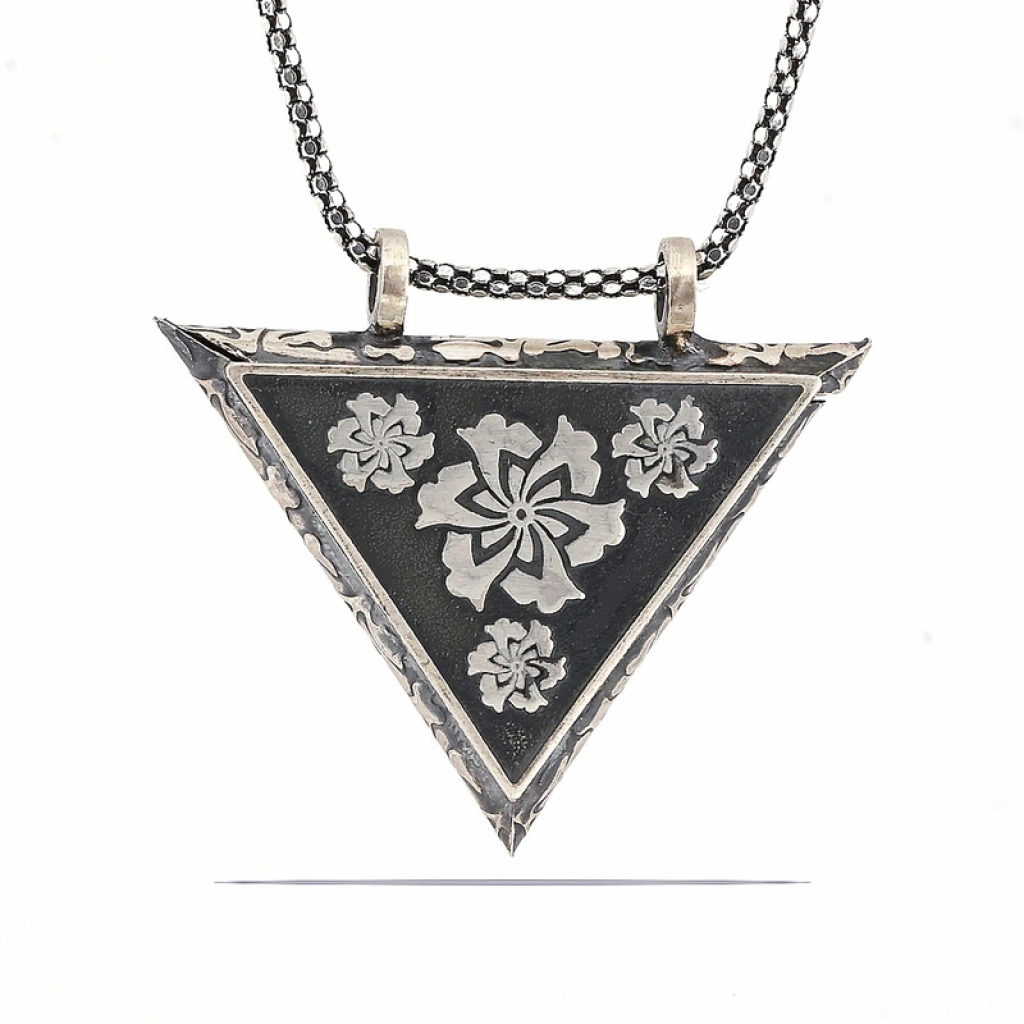 Gümüş Üçgen İçi Açılabilen Çiçek Muskalık Kolye