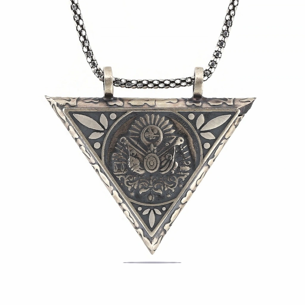 Gümüş Üçgen İçi Açılabilen Osmanlı Arma Muskalık Kolye