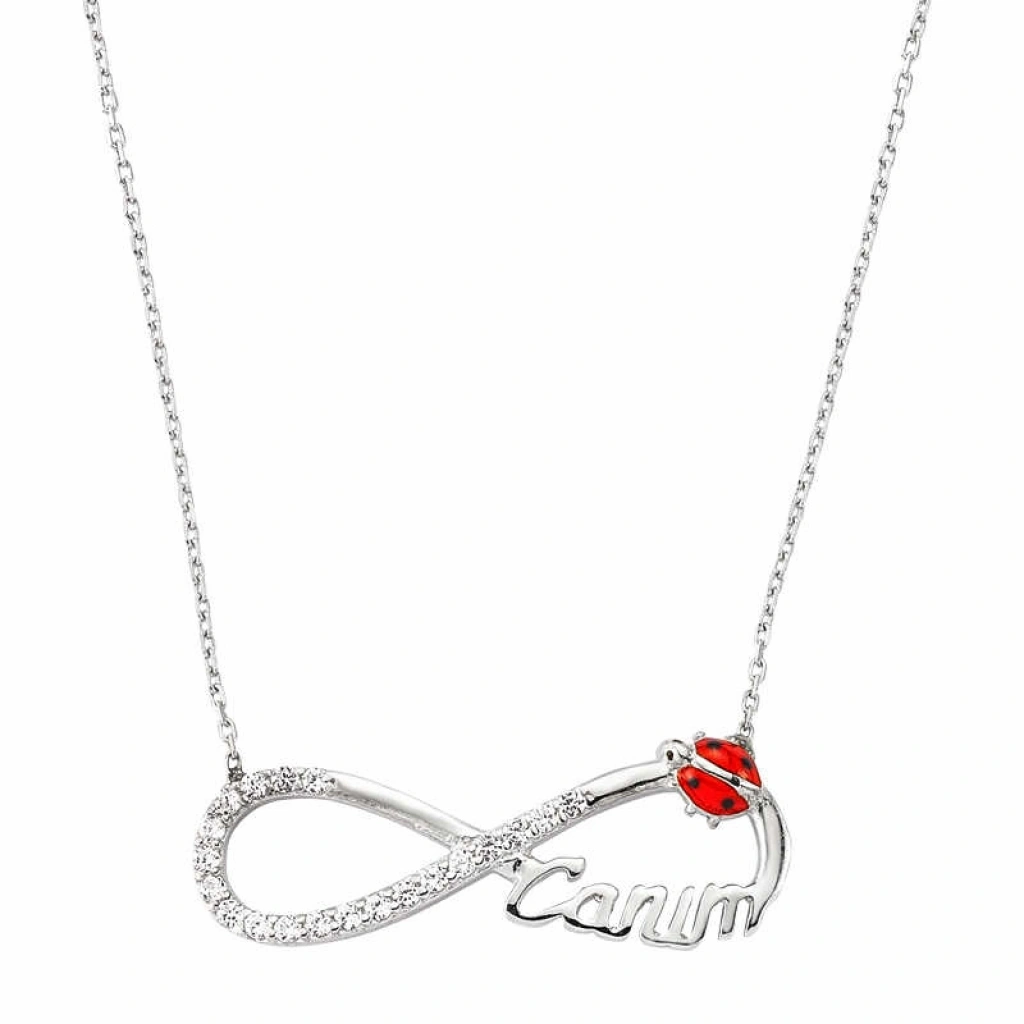 Gümüş Uğur Böcekli Sonsuzluk Canım Kolye