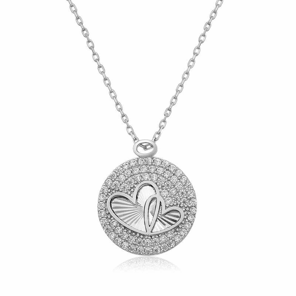 Gümüş Zirkon Taşlı İki Kalp Kolye