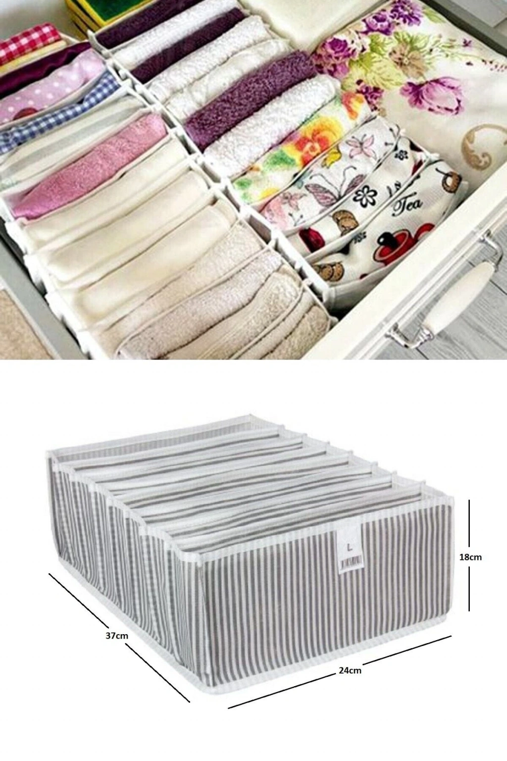 Akordiyon Çekmece Düzenleyici Organizer 8 Gözlü sayesinde daha düzenli çoraplar! Sadece çorapm eşarp , İç Çamaşırı , bebek kıyafetleri vb ne isterseniz düzenleyin! Çekmecelerinizde karışıklıktan, aradığınızı bulaktan sıkıldınız mı?Eşyalarınızın kaybolma derdine son! İşte size harika bir öneri geliyor. Çekmecelerinizdeki şaya son verin!Artık aradıklarınızı çok daha hızlı ve kolay bir şekilde bulabileceksiniz.Çekmece Düzenleyicinin Avantajları :Dolaplarınızda yerden tasarruf edin.Çekmecelerinizi dilediğiniz gibi kolayca ufak bölmelere ayırabilirsiniz.Çorapların, şalların ve kravatların düzenli olarak saklanmasını sağlar.8 Gözlü Çekmece İçi Akordiyon Organizer ile çekmece ve dolaplarınıza düzen gelsin.İstediğiniz her şeyi depolayabileceğiniz çok amaçlı organizer.Bebek ve çuk kıyafetlerini düzenlemek için birebir.İç çamaşırı, çorap, eşarp, kravat gibi eşyalarınızı düzenlemek için idealdir.Giymek istediğinizi aramadan bulmanızı kolaylaştırır.Giyinme süresini kısaltarak zaman tasarrufu sağlar.8 adet bölmesi mevcuttur.Ürün Ölçüleri: 24 x 37 x 18 cmRenk: Çizgili gri.Paket İçeriği: 1 adet 11 Gözlü Çekmece İçi Akordiyon Organizer