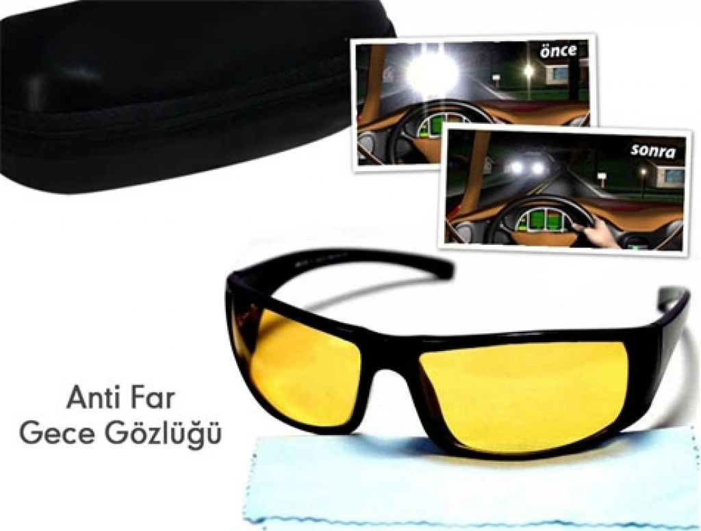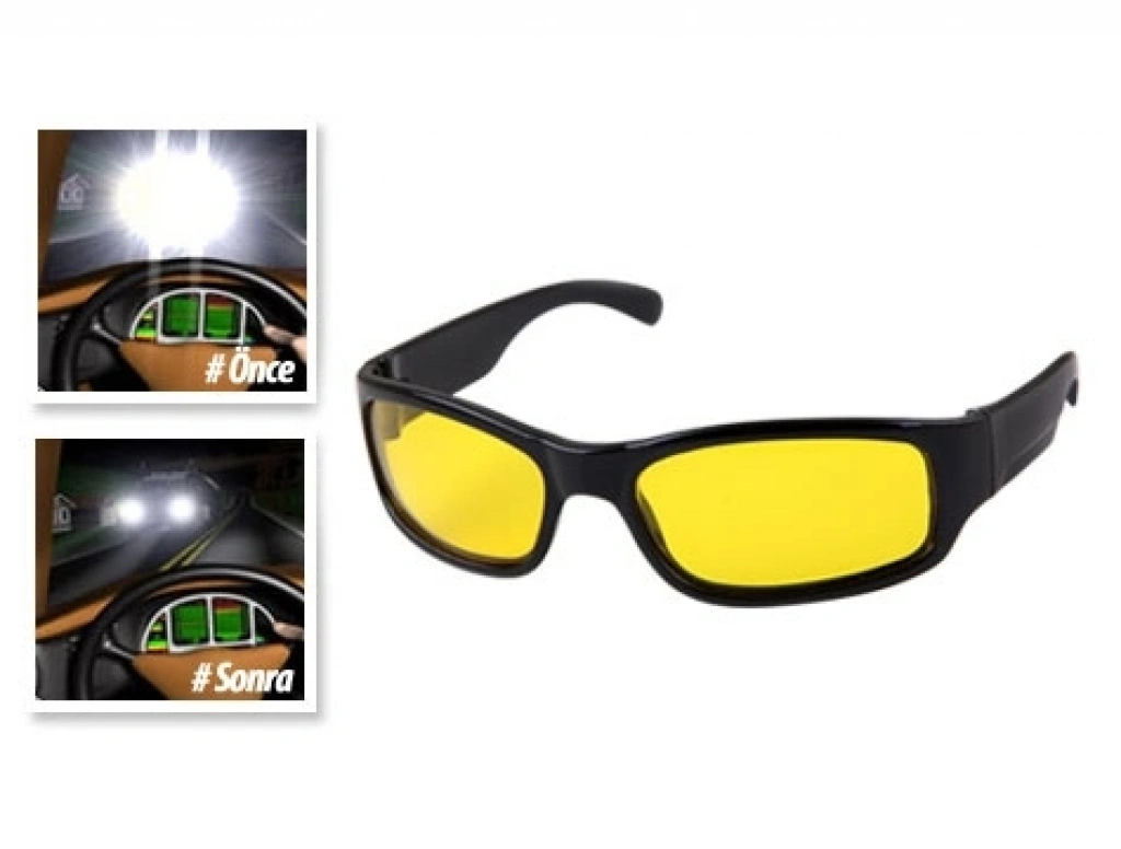- Sarı renkli, özel kaplamalı lens ile üretilen sürücü gözlüğü, ışık parlamalarını azaltan, Avrupa ve Amerika'da genellikle sürücüler tarafından gece sürüşlerinde sıklıkla kullanılan özel bir üründür.