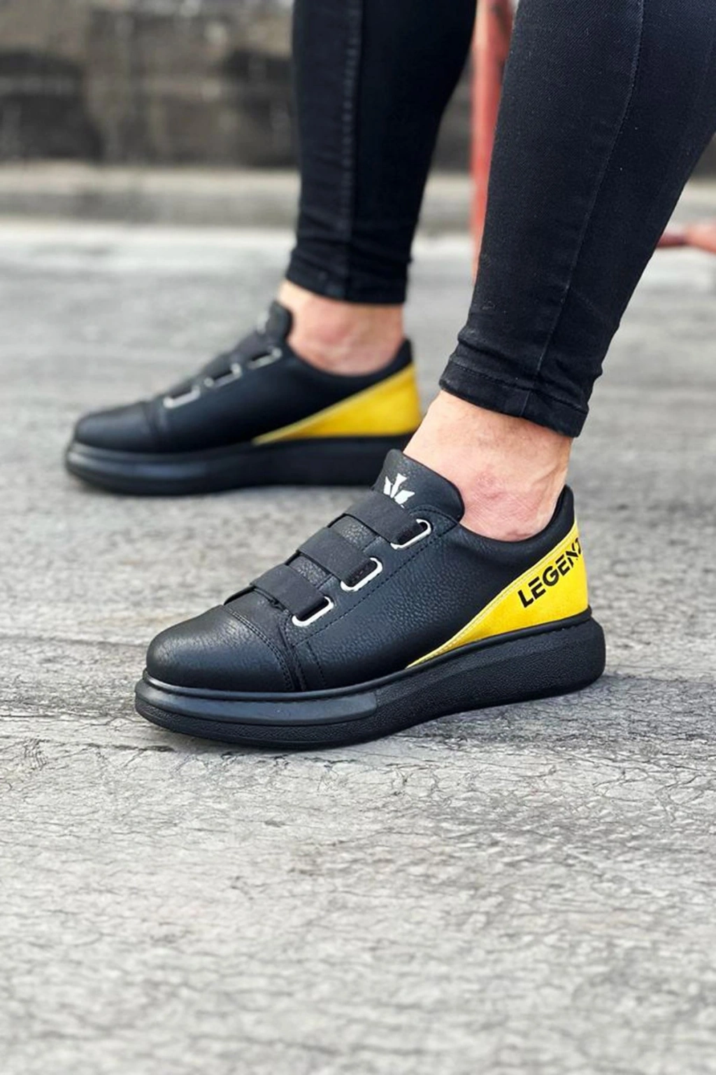 Bant Legend Kömür Sarı Kalın Taban Casual Erkek Ayakkabı