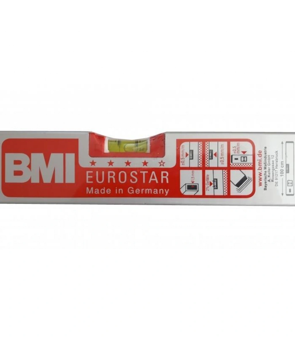 BMI Euro Star 690 Alüminyum Su Terazisi 100 cmYatay göz üzerinde yüzde 2 eğim çizgileriLazer işaretlemeli terazi gözleri mür boyu 0.5 mmm hassasiyet sağlar.100 cm uzunluk