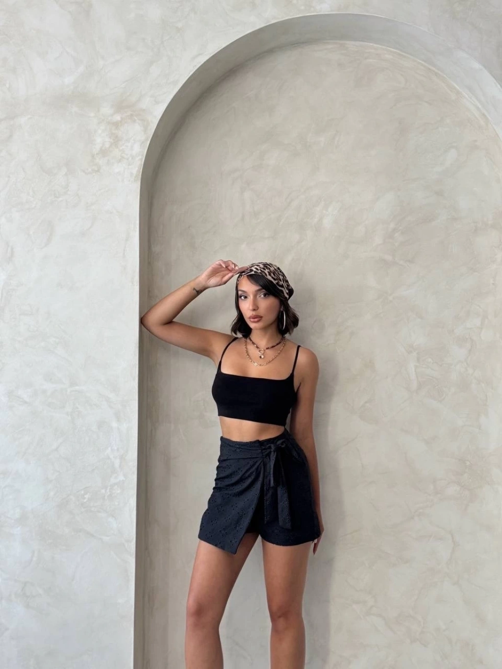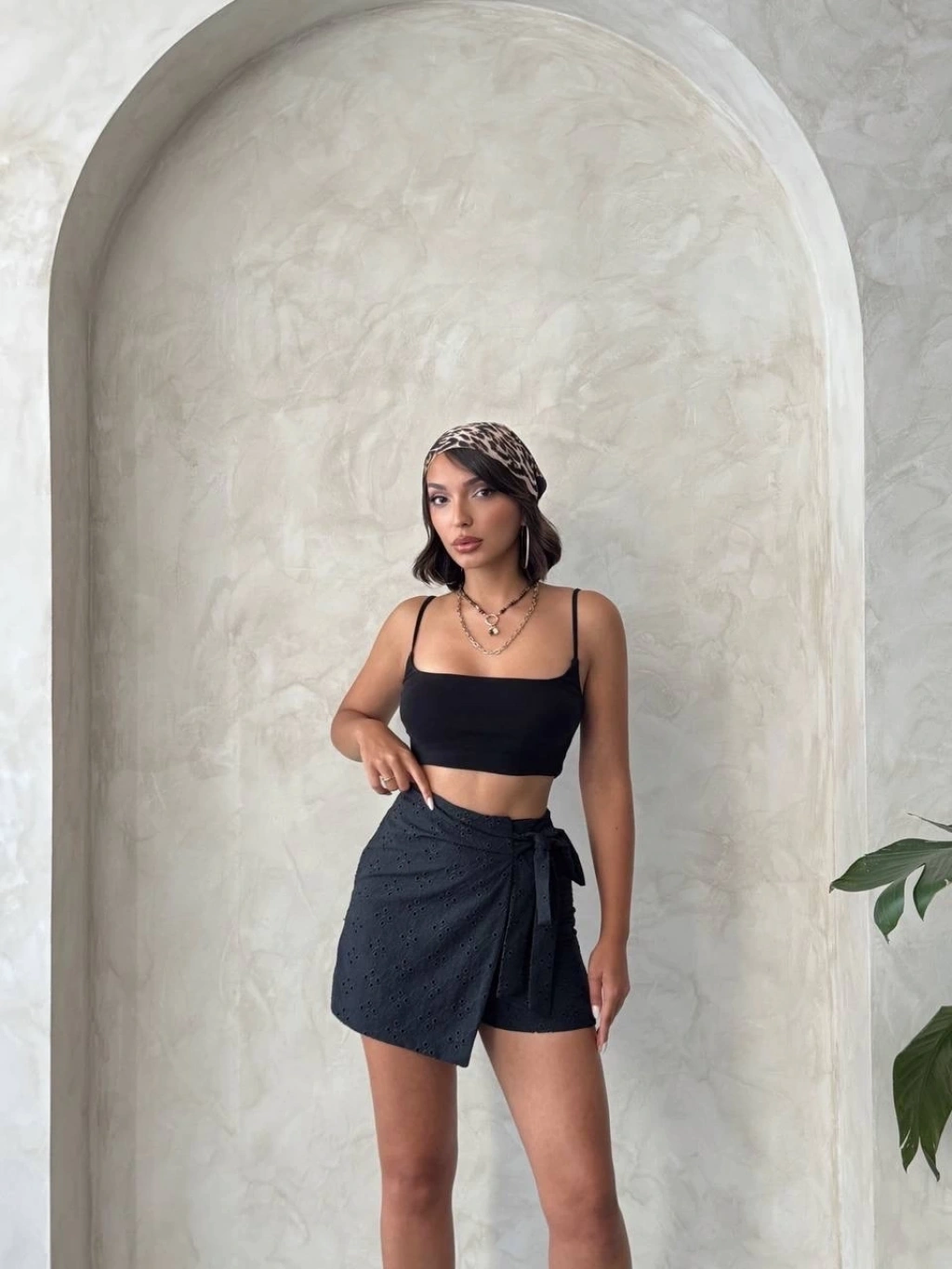 Brodeli şort etek s255075--Brodeli şort etek s255075, şık ve rahat tasarımıyla öne çıkan bir parçadır. - Yüksek bel şort etek modeliyle vücut hatlarınıza uyum sağlar. - Fermuar detayıyla kolayca giyip çıkarabilirsiniz. - Kaliteli kumaşı sayesinde uzun ömürlü bir kullanım ianı sunar. - Farklı renk seçenekleriyle tarzınıza uygun seçim yapabilirsiniz.