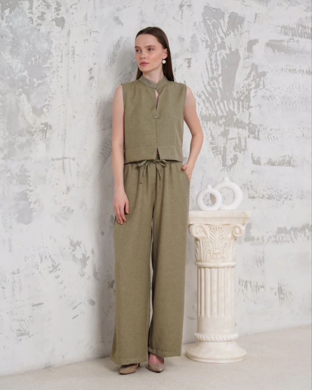 Broşlu yelek pantolon takım haki s255821--Yeni sezonda şıklık ve rahatlığı bir arada sunan Haki Broşlu Yelek Pantolon Takım, gardırobunuzun vazgeçilmezi olmaya aday! Detaylı dikişleri ve modern kesimiyle dikkat çeken bu takım ile her ortamda şık ve zarif bir görünüme sahip olabilirsiniz. Ürün Özellikleri: Yelek ve pantolonun uyumlu kombinasyonu Broş detayı ile farklı bir hava Yüksek kaliteli ve dalı kumaş Rahat ve esnek giyim konforu İster günlük hayatta ister özel davetlerde kullanılabilir Şıklığıyla göz ştıran Haki Broşlu Yelek Pantolon Takım, Kadın Giyim kategorisinde yer almakta olup, her bedene uygun kesimi ile dikkat çekmektedir. Gardırobunuzun vazgeçilmezi olmaya aday olan bu takımı hemen sepetinize ekleyin!