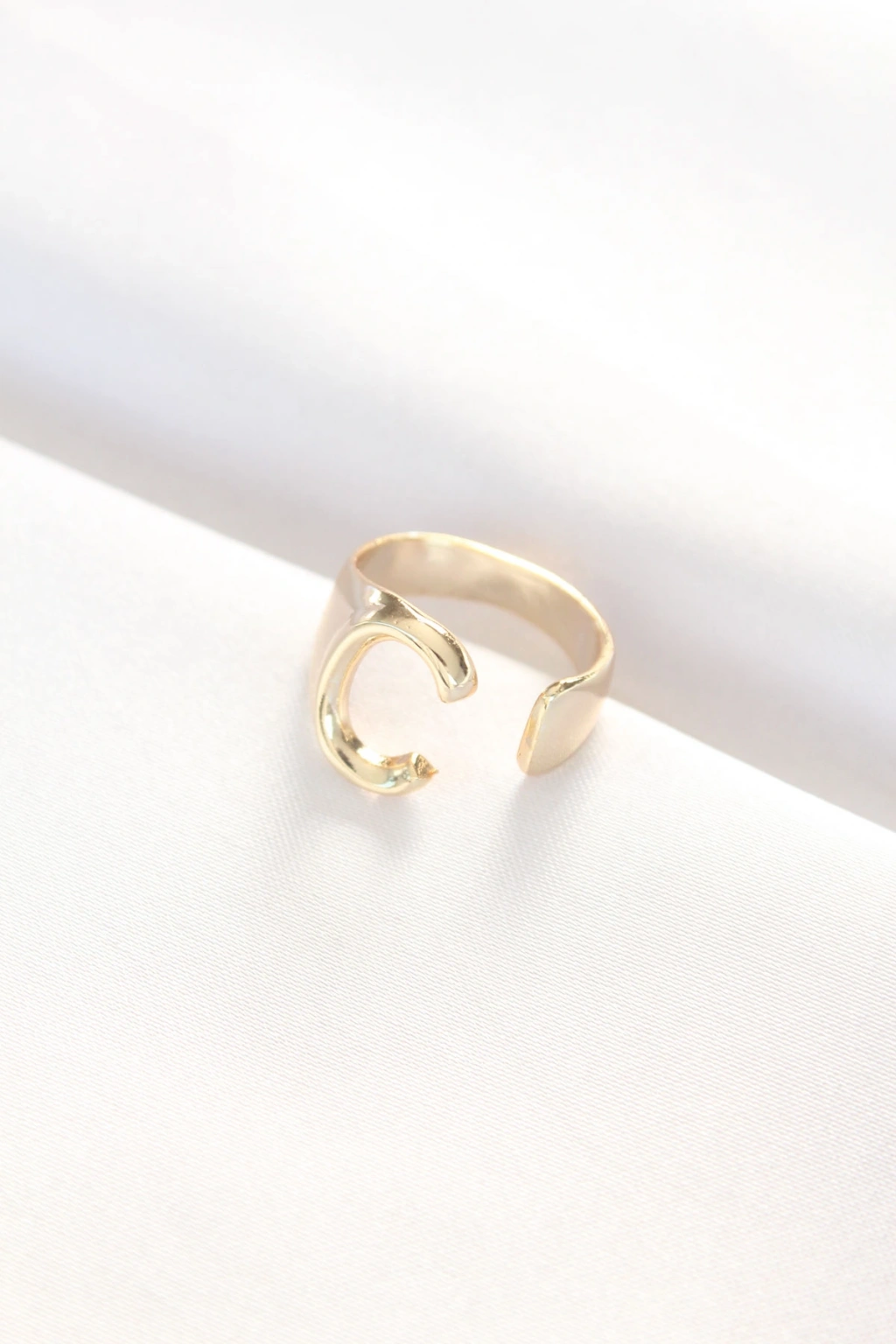 C Harfli Altın Renk Ayarlanabilir Yüzük