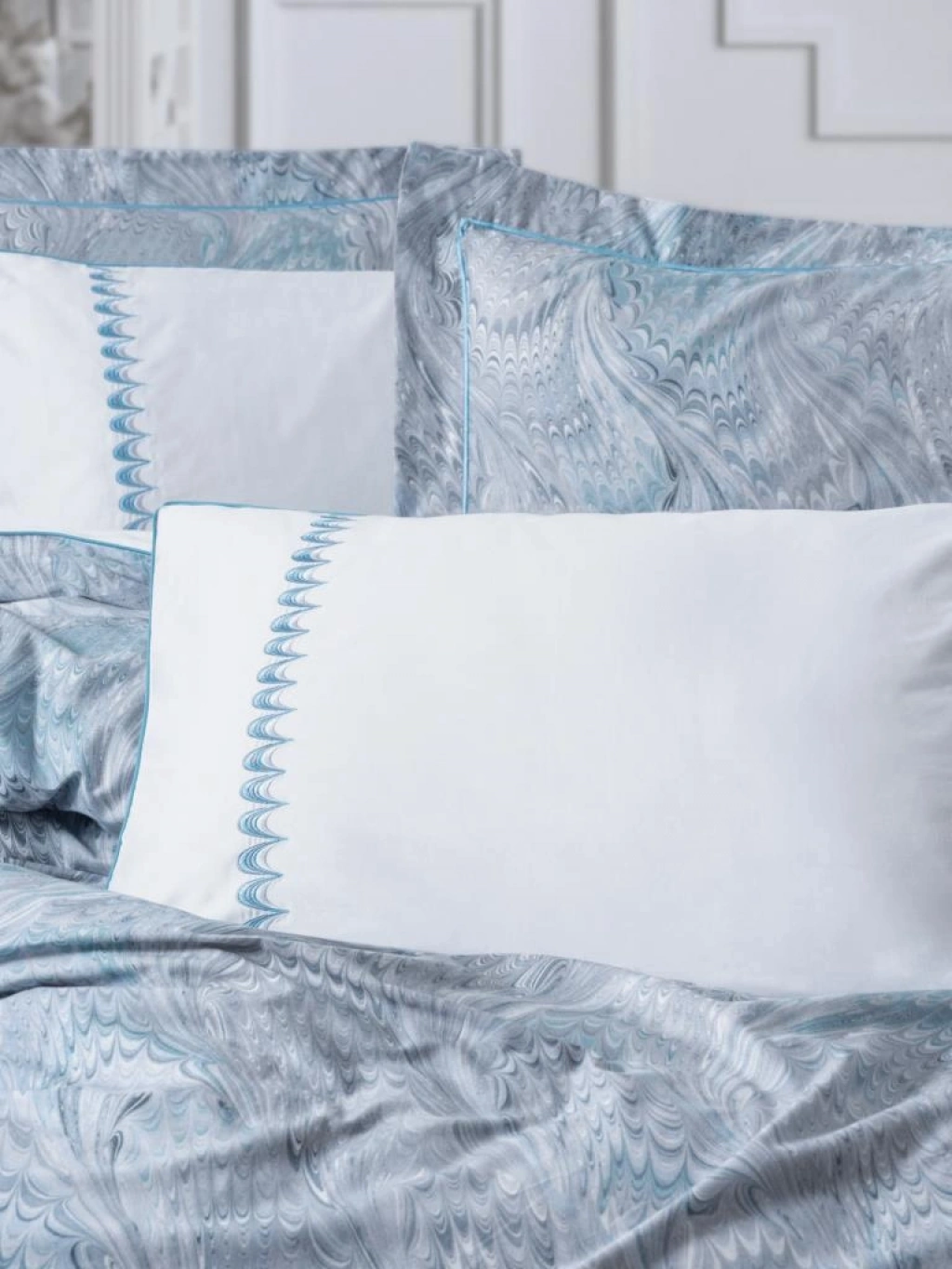 Çift Kişilik Elit Saten Nev Takımı Stilla Mavi