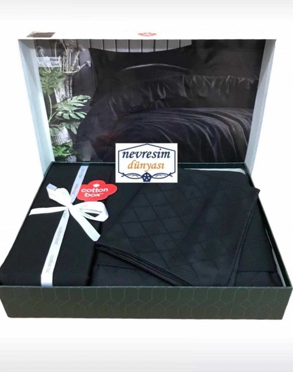 Çift Kişilik Jakarlı Saten Nev Takımı Dama Siyah