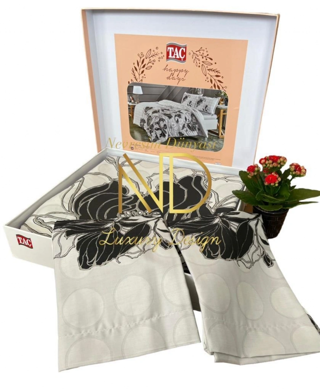 Ürün Ölçüleri • Nev: 200x220 cm • Çarşaf: 230x260 cm • 2 Adet Yastık Kılıfı: 50x70 cm Ürün Özellikleri • 86 tel sıklığında ve ince pamuk ipliklerle dokunmuştur. • Özel dokuma tekniği sayesinde sahip olduğu göz alıcı parlaklığının yanı sıra kusursuz tuşesi ve dökümlü görünümü ile eşsiz bir zarafet sunar. • Doğaya saygılı üretim standartlarıyla üretilmiştir. • Dalı yapısı ve %100 pamuk dokusu ile uyku saatlerinize rahatlık katmaktadır. • Yı önerilerine uyulduğunda ilk günkü canlılığını uzun yıllar korumaktadır. Yı Talimatı • İlk kullanımdan önce mutlaka yıkayınız. • Ürünü ters çevirerek yıkayınız. • Yı sonrası ıslak bekletmeyiniz. • Yı esnasında koyu renkleri ayrı tutunuz. • Yı talimatına uygun kullanınız.