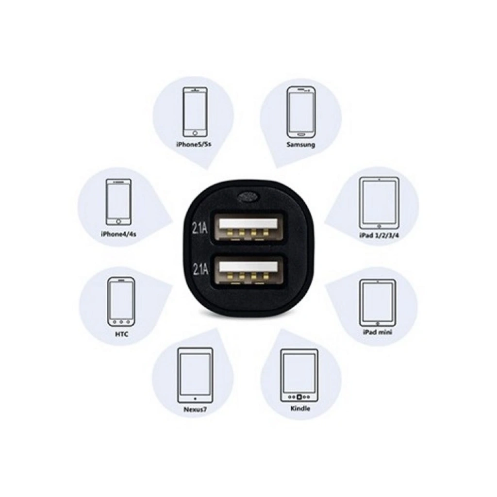 Çift USB Girişli 2.1 AMP Araç Şarj AletiAracınızda telefonunuz yada tablet bilgisayarlarınız şarjsız kalmasın diye özel olarak üretilen Çift USB Girişli 2.1 AMP Araç Şarj Aleti sizleri bekliyor !Çift USB Girişli 2.1 AMP Araç Şarj Aleti'ni aracınızın çakmak girişine takıp, çift USB girişi sayesinde aynı anda tablet ve telefonunuzu şarj edebilirsiniz.Telefonunuzun yada tabletinizin usb şarj girişini kullanarak rahatlıkla aracınızda kullanabilirsiniz.Ürün Özellikleri:GPS, iPad, 4/3GS/3G, Blackberry, Nokia, Sony Ericsson, Motorola, , HTC, LG, O2, Asus, Mic 5PIN, Min 5PIN, Palm, T.Mobile, Orange gibi tüm USB ile şarj alan elektronik cihazlara uyumludur.Teknik Özellikler:2.1 A iPad ve tablet bilgisayarlar için güç desteği1 A Telefonlar için güç desteğiInput: 12-24DVCOutput: 5.0VDC2.1A1000 mAÜrün Ölçüsü:Çap: 3 cmYükseklik: 6,5 cmPaket İçeriği: 1 Adet Çift USB Girişli 2.1 AMP Araç Şarj Aleti