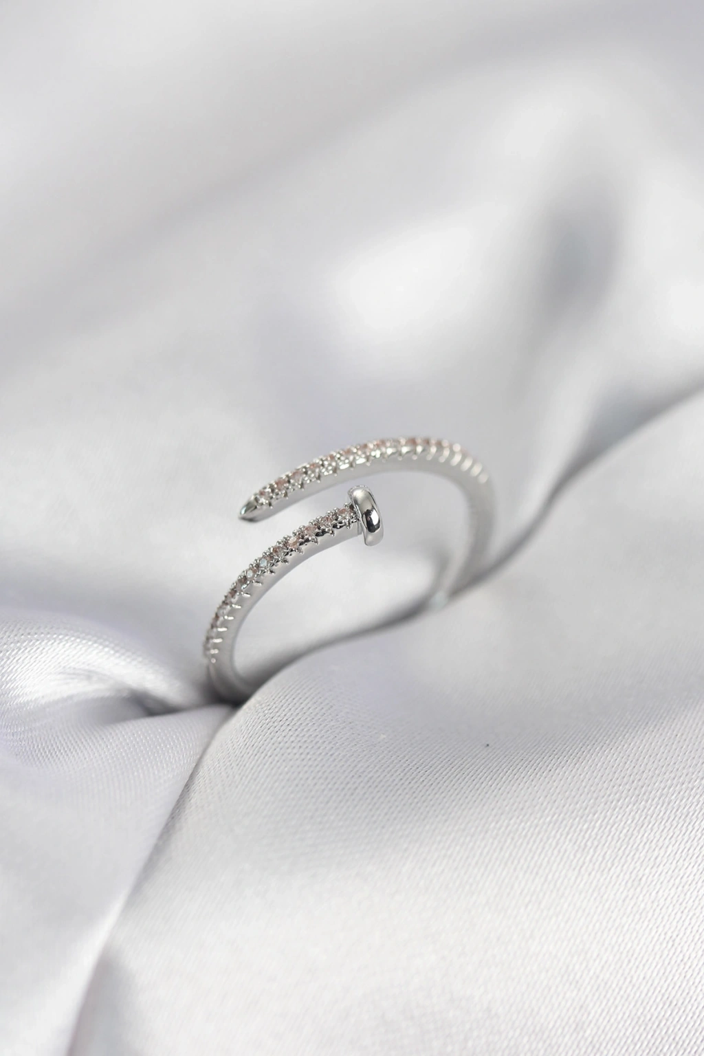 Çivi Model Zirkon Taşlı Gümüş Renk Kadın Yüzük