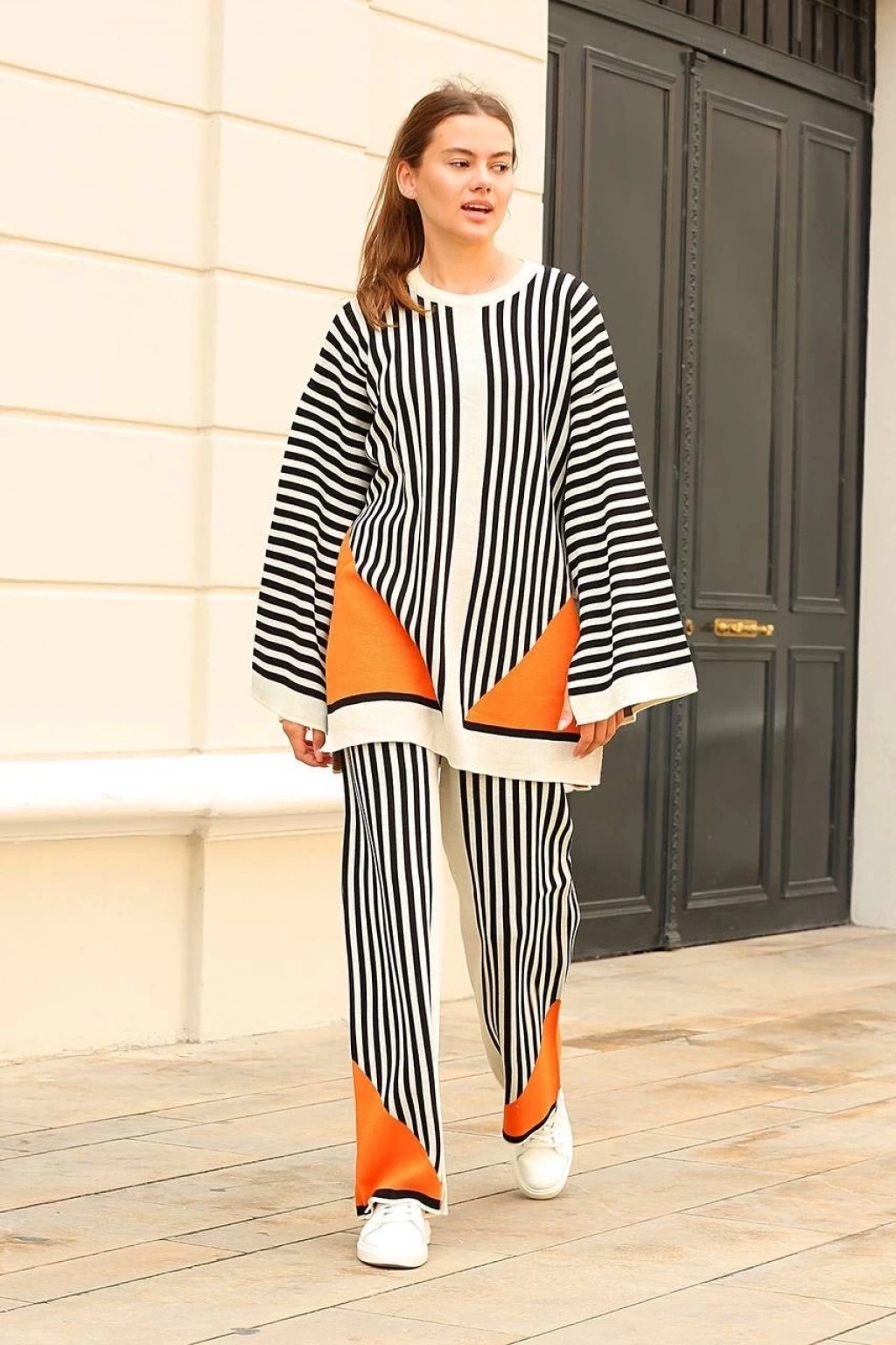 Çizgili bisiklet yaka triko takım beyaz--Çizgili bisiklet yaka triko takım beyaz, şıklığı ve rahatlığı bir arada sunar. Ürün Özellikleri: Yumuşak ve kaliteli triko kumaştan üretilmiştir. Beyaz zemin üzerinde şık çizgili desenler bulunmaktadır. Bisiklet yaka detayı modern ve trend bir görünüm sağlar. Üst kısmı uzun kollu, alt kısmı ise dar paça pantolondan oluşmaktadır. İster günlük kombinlerde isterseniz özel davetlerde şıklığınızı tamamlar.