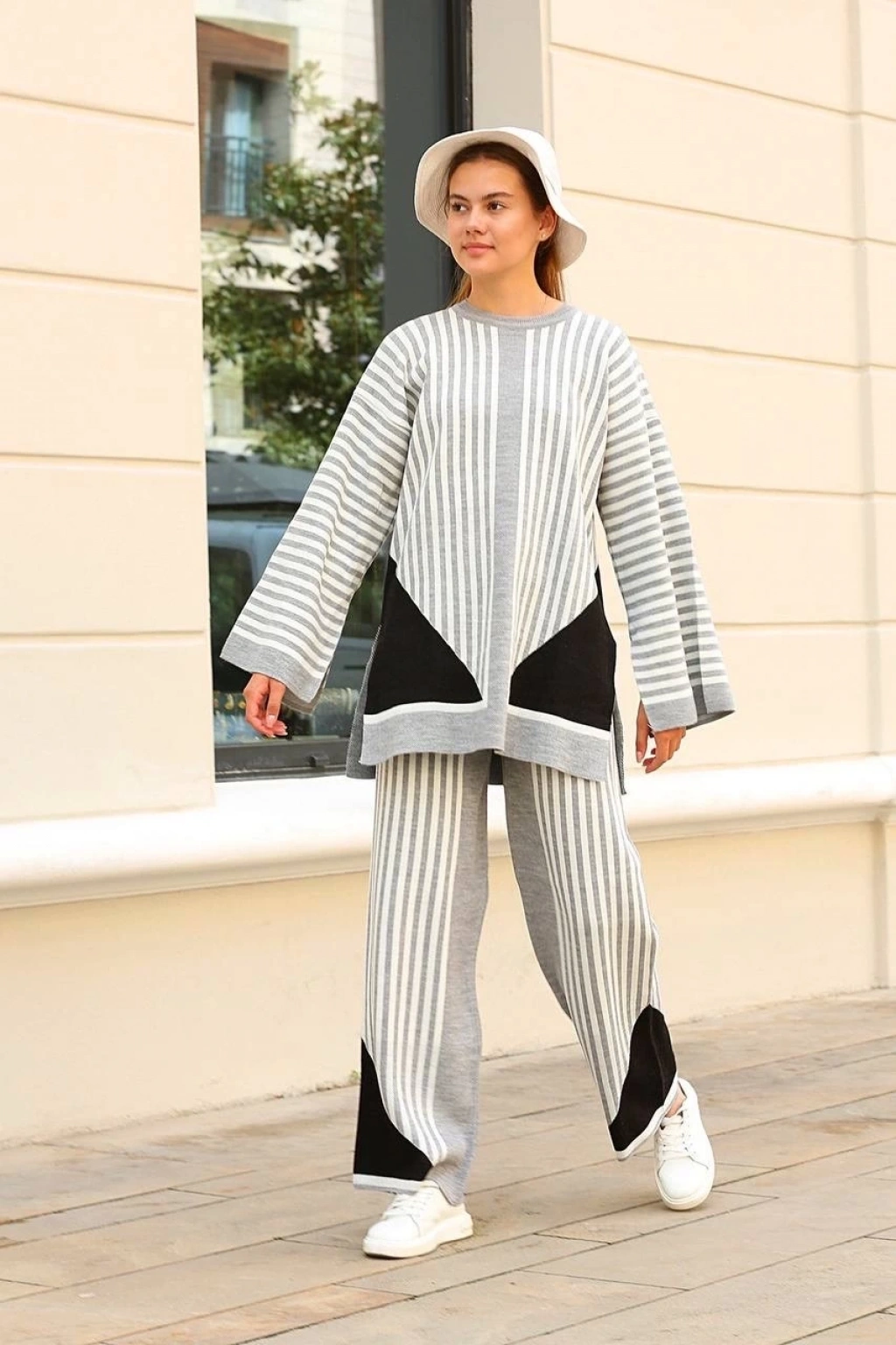 Çizgili bisiklet yaka triko takım Gri--Bu çizgili bisiklet yaka triko takım Gri rengi ile şıklığı ve rahatlığı bir arada sunuyor. Ürün Özellikleri: Bisiklet yaka tasarımı ile modern ve trend bir görünüm sunar. Rahat ve esnek triko kumaşı sayesinde gün boyu konfor sağlar. Şık çizgili deseni ile dikkat çeker. Uzun kollu üst ile şortun mükemmel kombinasyonu. Yüksek bel şort modeli ile vücudu kusursuzca saran bir kesime sahiptir. Gri rengi ile her türlü kombinasyona uyum sağlar.