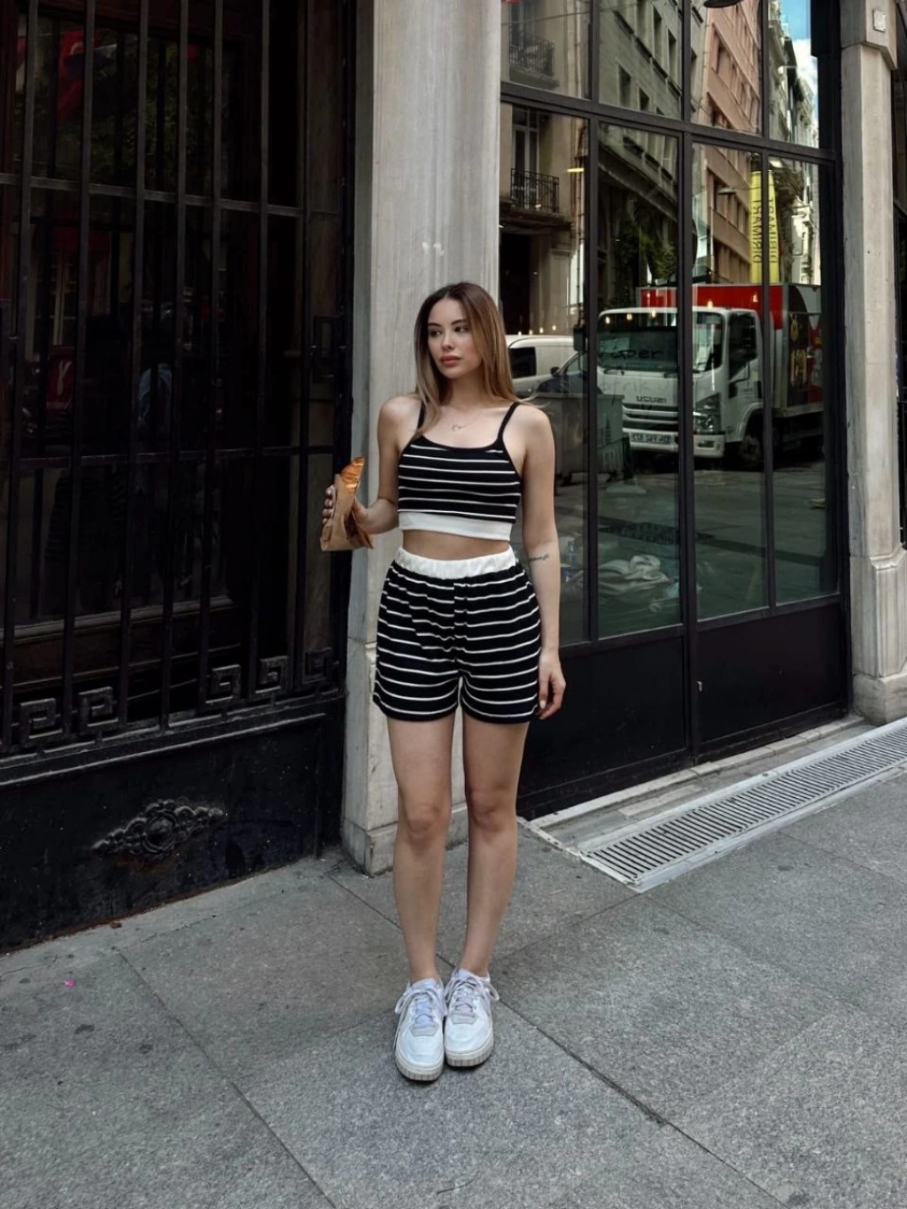 Çizgili şortlu takım siyah s3978--Şıklığı ve rahatlığı aynı anda sunan çizgili şortlu takım siyah s3978, gardırobunuzu tamamlayacak bir parça. Ürün Özellikleri: Yumuşak ve esnek kumaşı sayesinde gün boyu konfor sağlar. Çizgili deseniyle şık bir görünüm sunar. Yüksek bel şortu ile vücudu saran ve rahat bir kesime sahiptir. Uzun kollu ve kapüşonlu üstü, spor ve şık tarzı bir arada sunar. Kadın giyim kategorisinde yer alan bu takım, her mevsim rahatlıkla kullanılabilir.