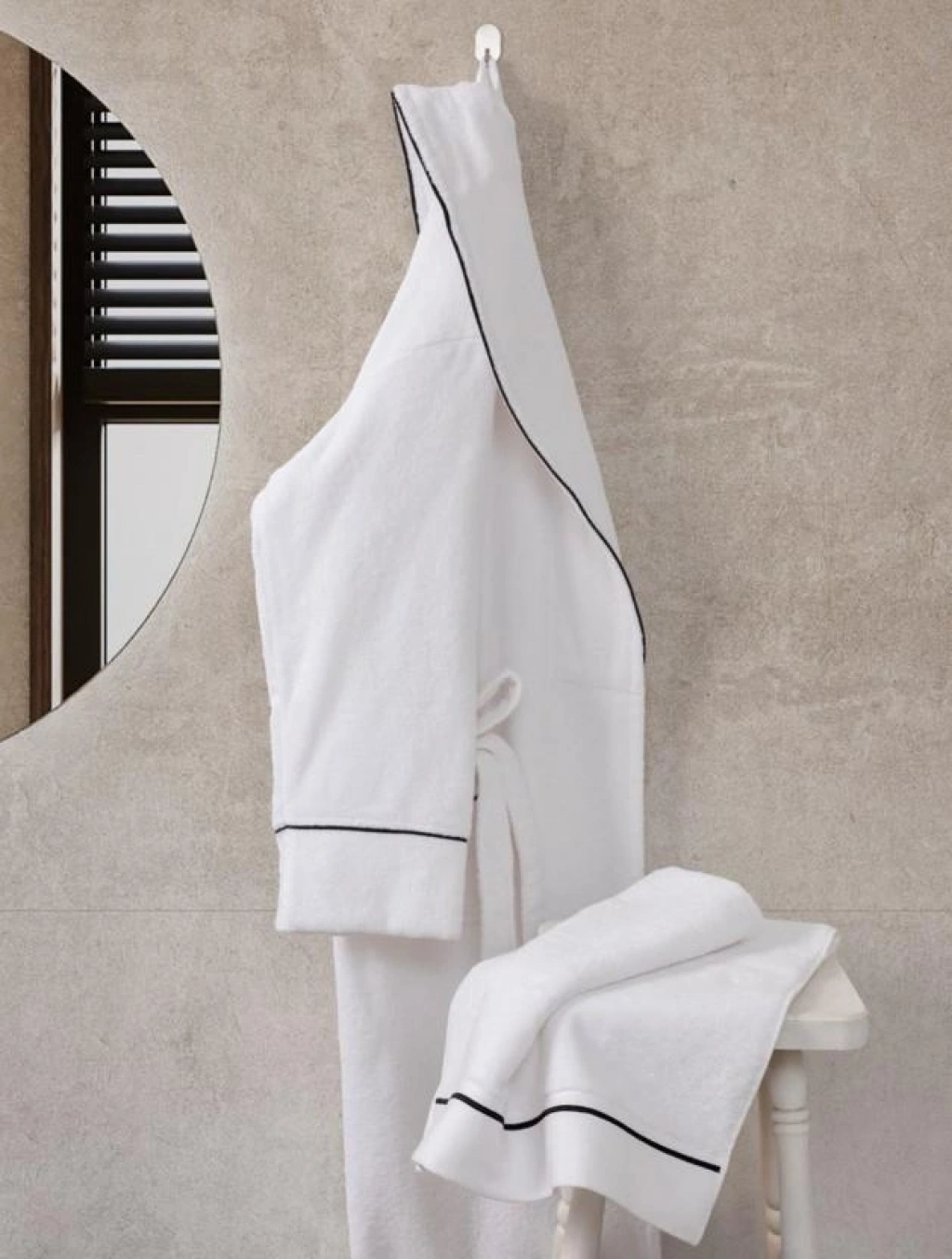 Ephemeris Pamuk Kapüşonlu Unisex Bornoz - Lara Beyaz