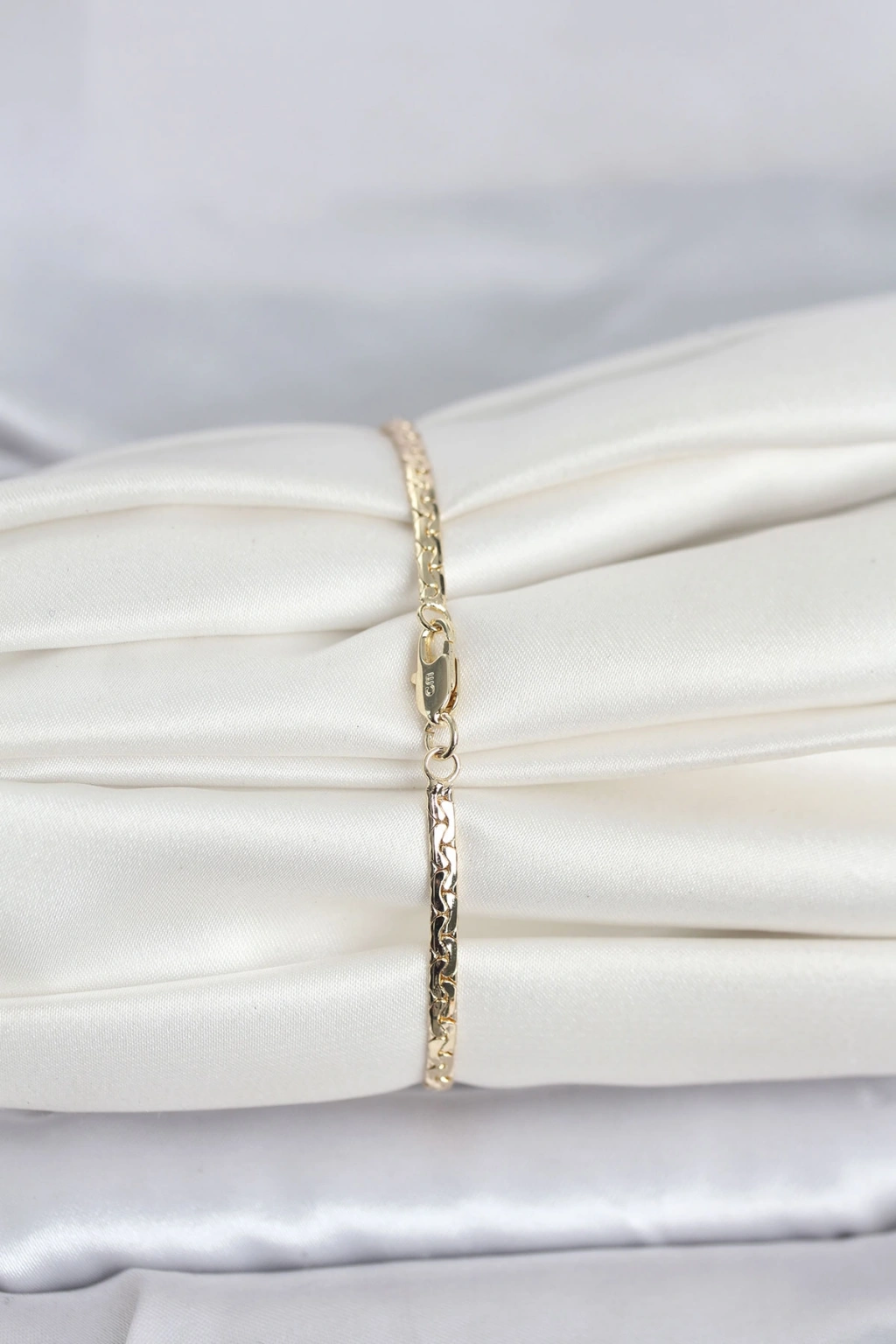 CM 14K Gold Renk Yassı Ezme Zincir Model Kadın Bileklik